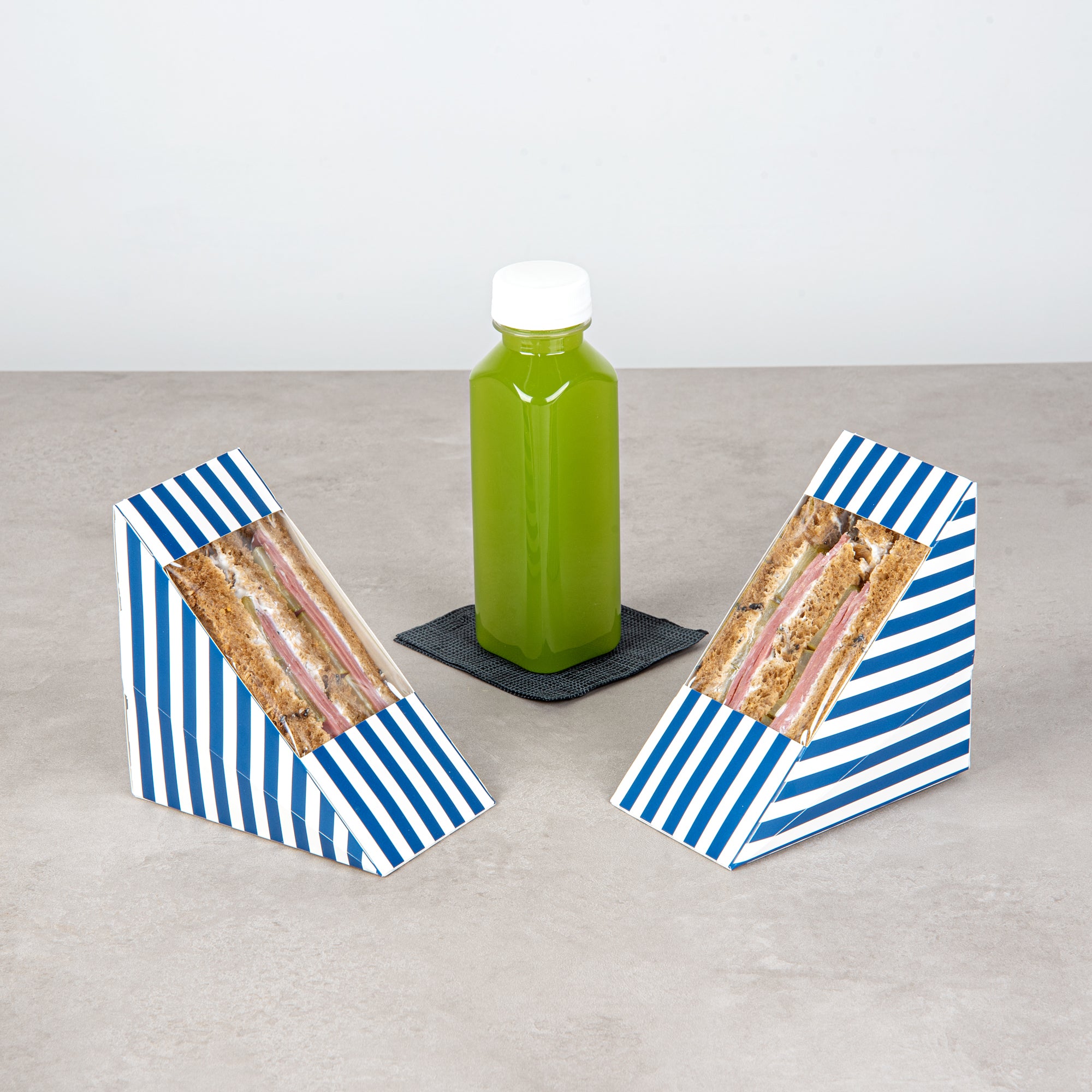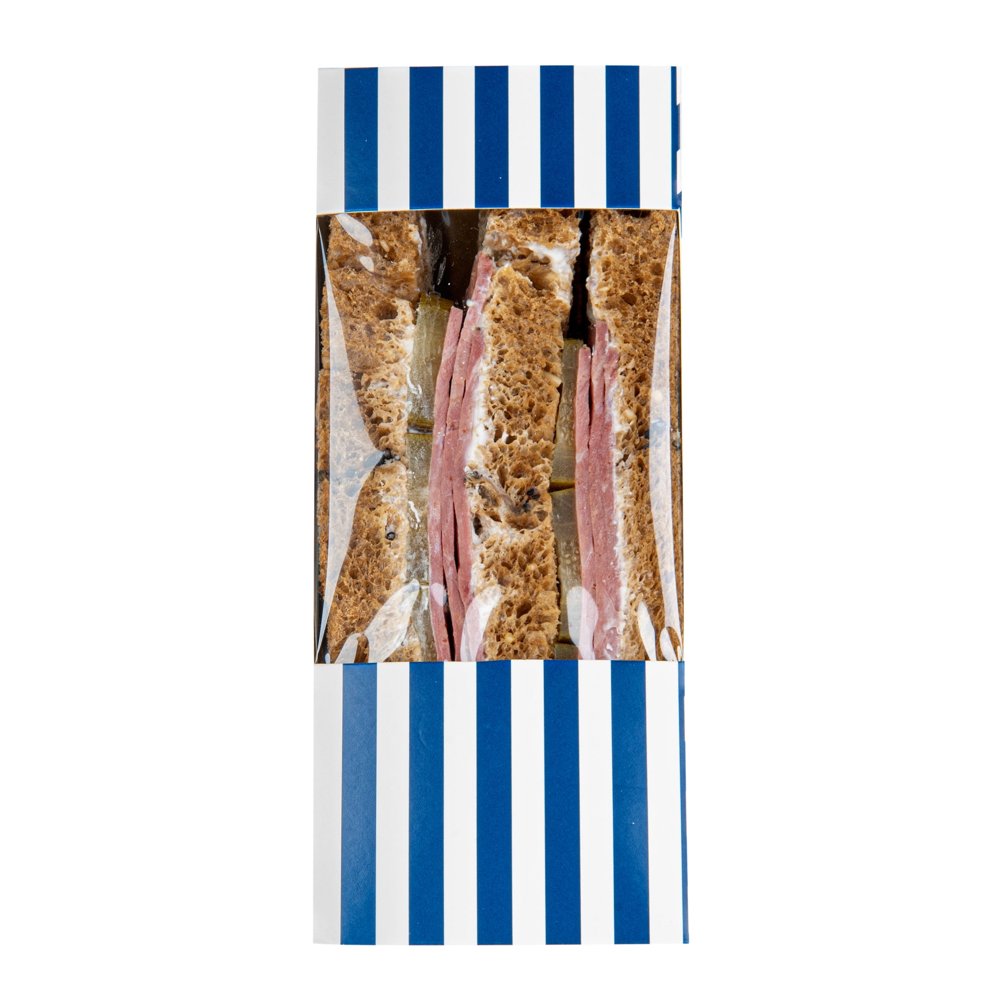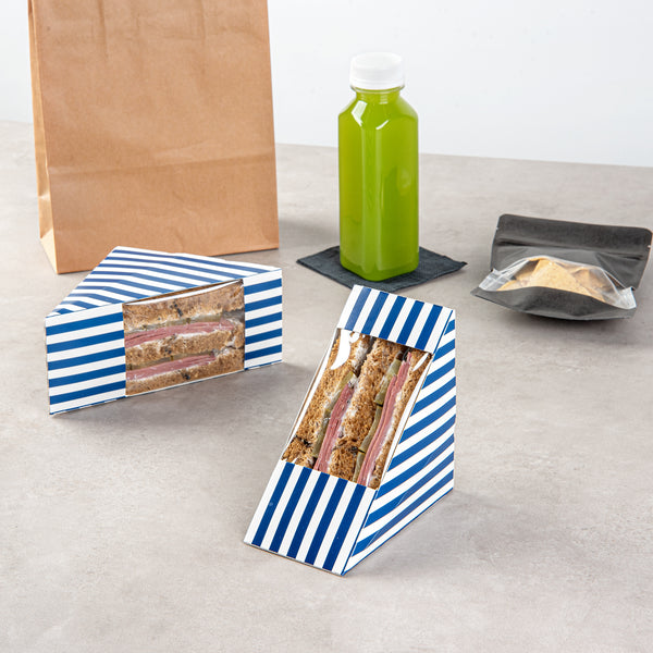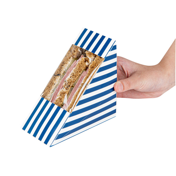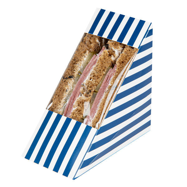 TRIANGLE BLUE AND WHITE STRIPE PAPER MEDIUM SANDWICH BOX