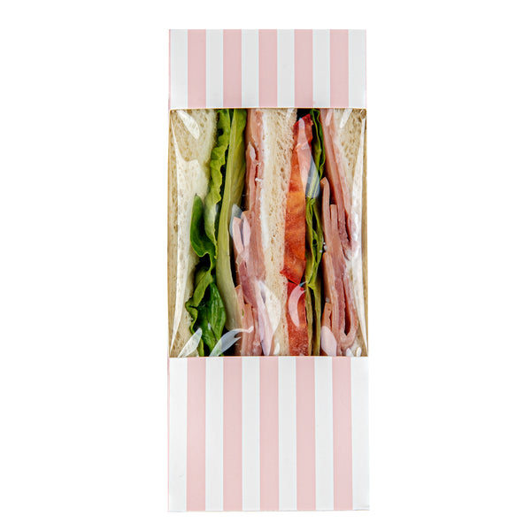 TRIANGLE PINK AND WHITE STRIPE PAPER MEDIUM SANDWICH BOX