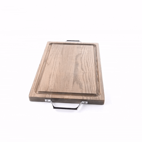 Use our Eco Display Campagna Small Serving and Cutting Board to easily accomplish your prep work or to bring a rustic touch to your serveware. Made from premium pieces of platinum ash wood, this unique tray can be used as a decorative serving tray or a heavy-duty carving board. Its sturdy wooden construction provides a stable base for carving meats and poultry, while its built-in handles make it effortless to pick up and carry your prepared foods. Featuring high-shine chrome hardware, this serving board is an excellent serving dish for parties, banquets, weddings, and other upscale catered events. Each of these ash wood serving boards measures 21.5 inches long by 12 inches wide. Shipped in a 1 count box.