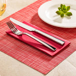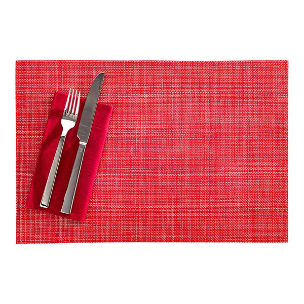 RED VINYL WOVEN PLACEMAT - WITH KHAKI THREADS
