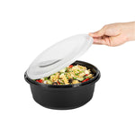 101 OZ ROUND BLACK PLASTIC CATERING / SERVING BOWL - WITH CLEAR LID