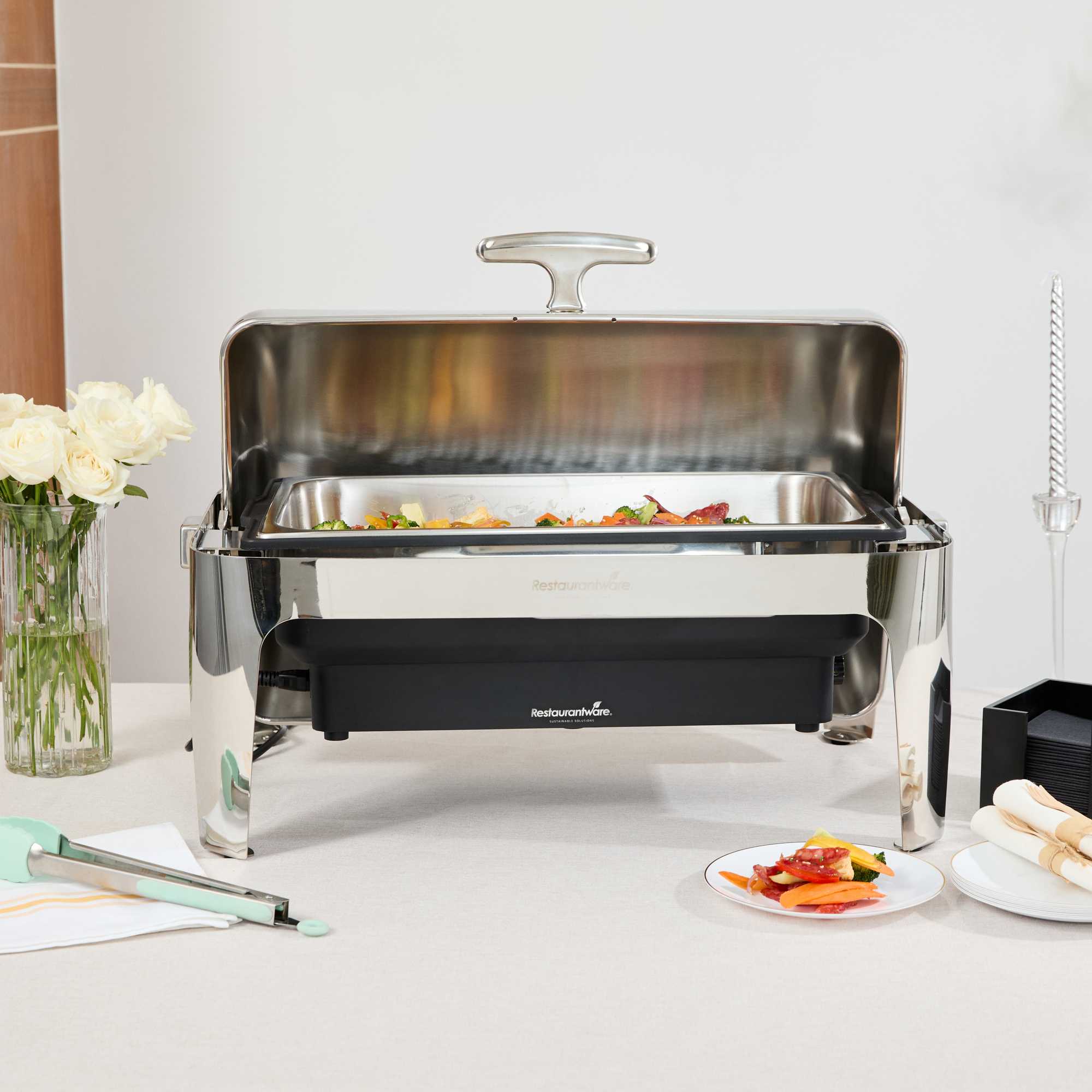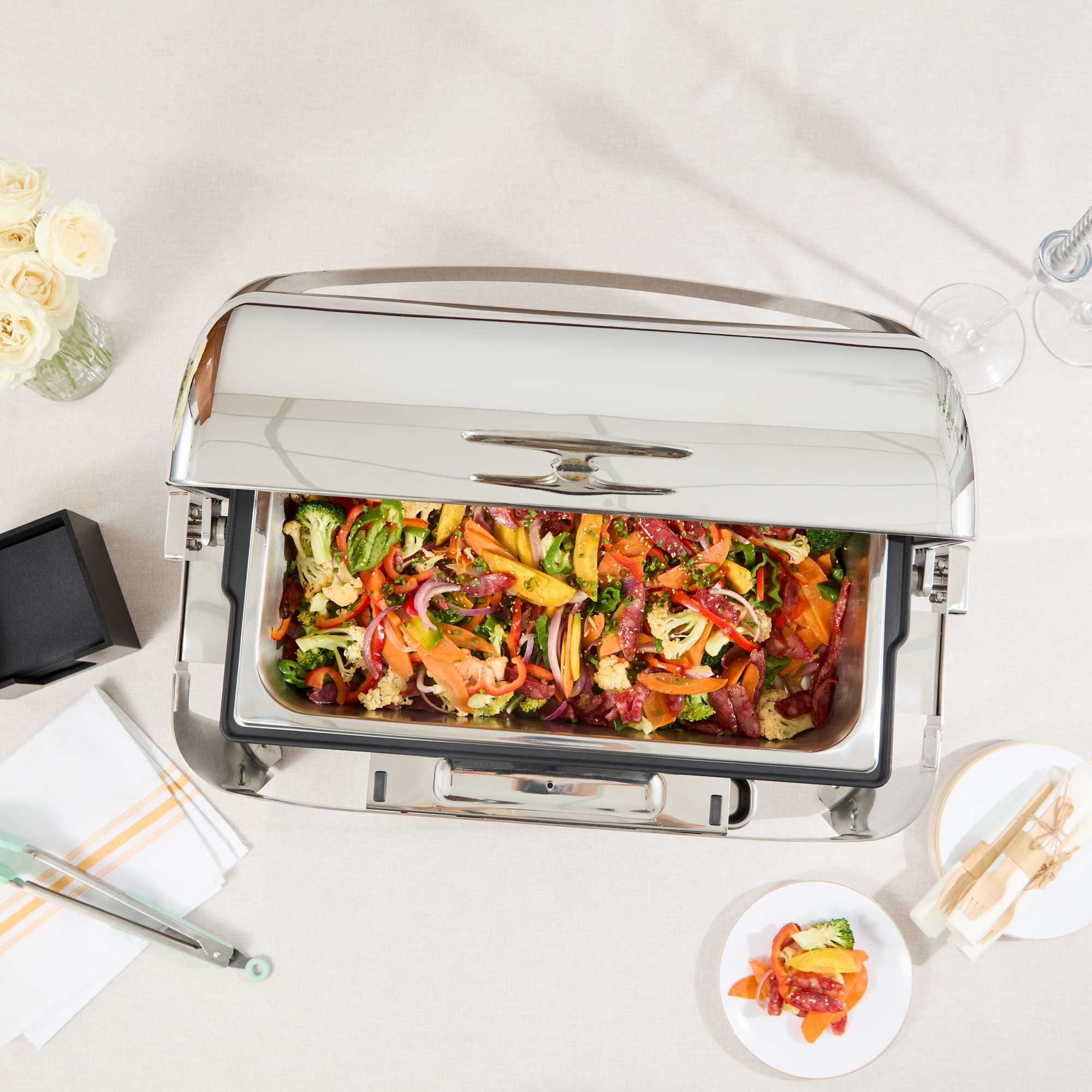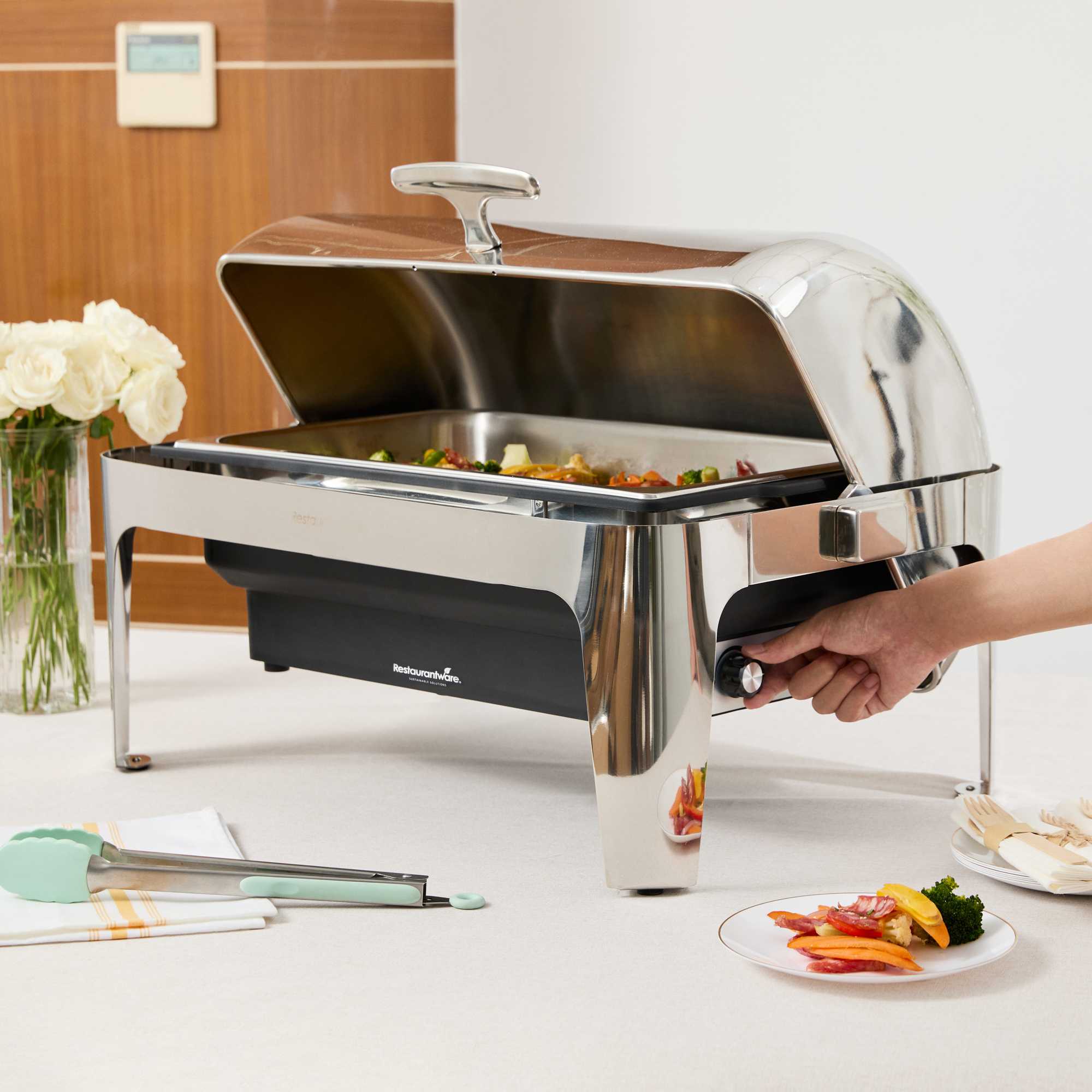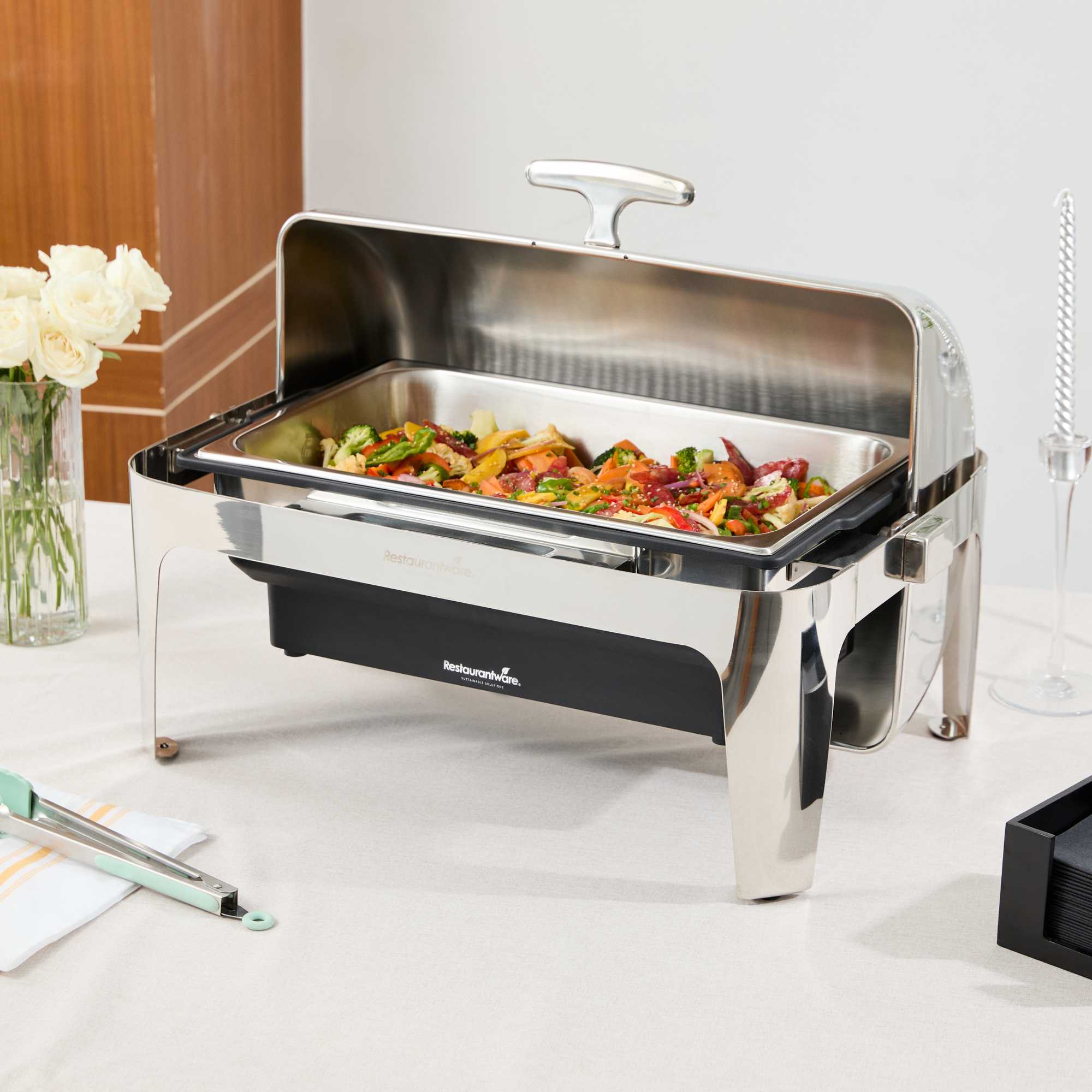 14 QT FULL SIZE ELECTRIC CHAFER - STAINLESS STEEL ROLL TOP COVER