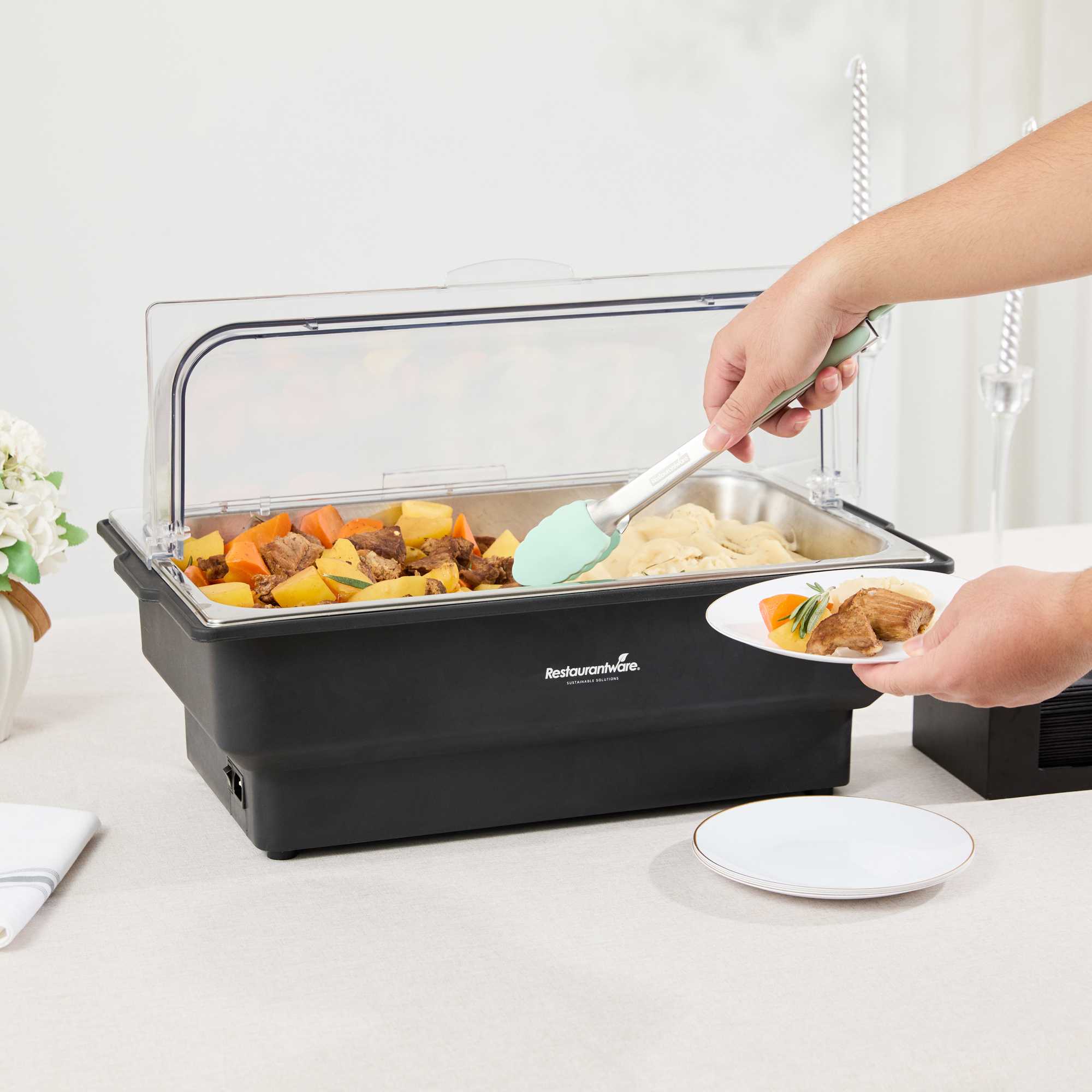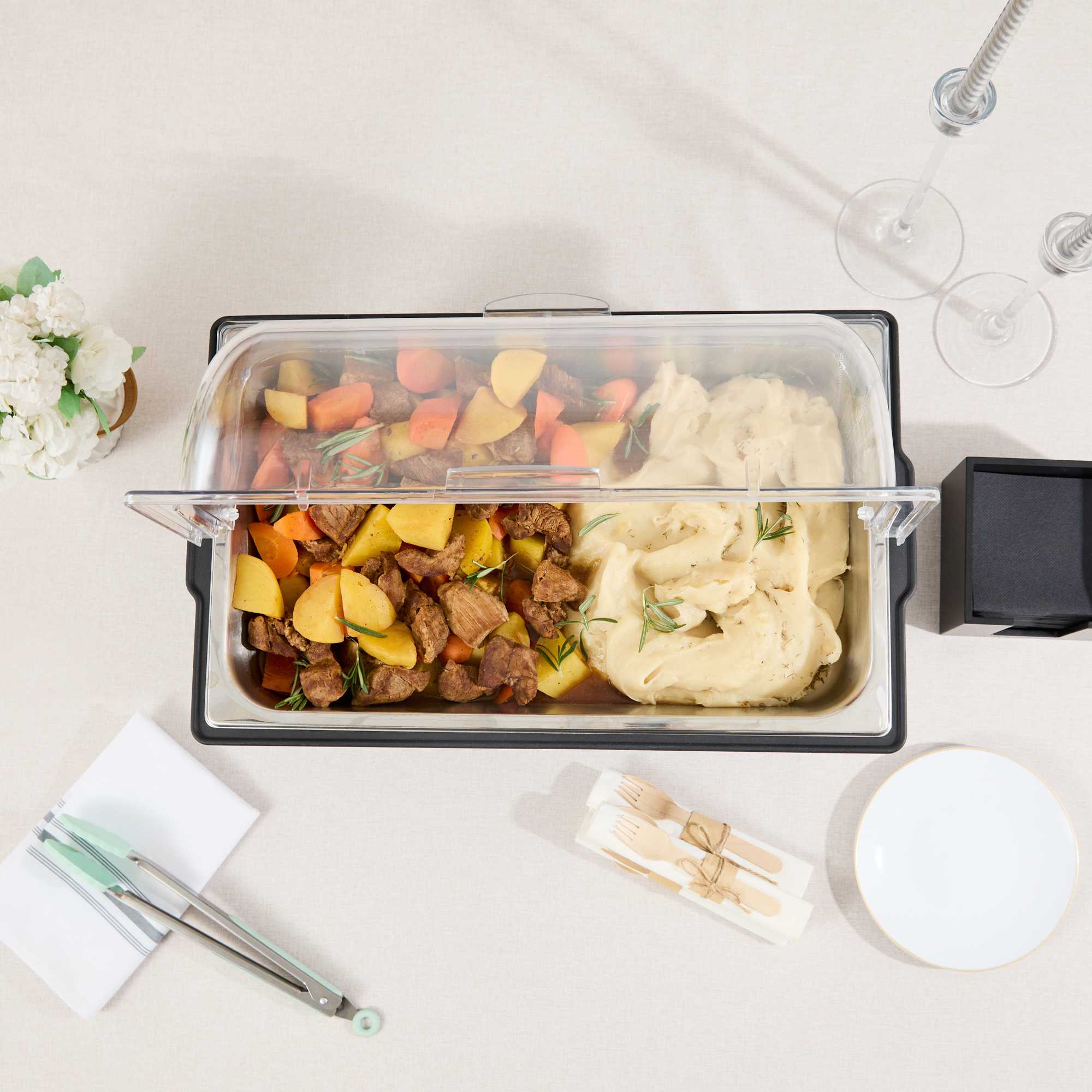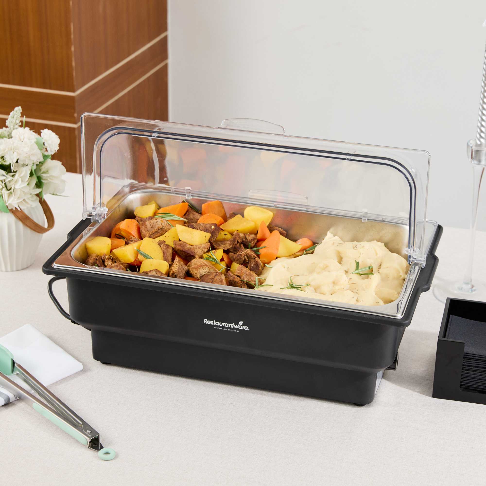 - Full-size chafer accommodates large catering portions