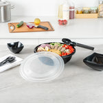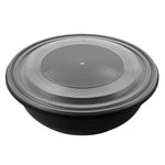 142 OZ ROUND BLACK PLASTIC CATERING / SERVING BOWL - WITH CLEAR LID