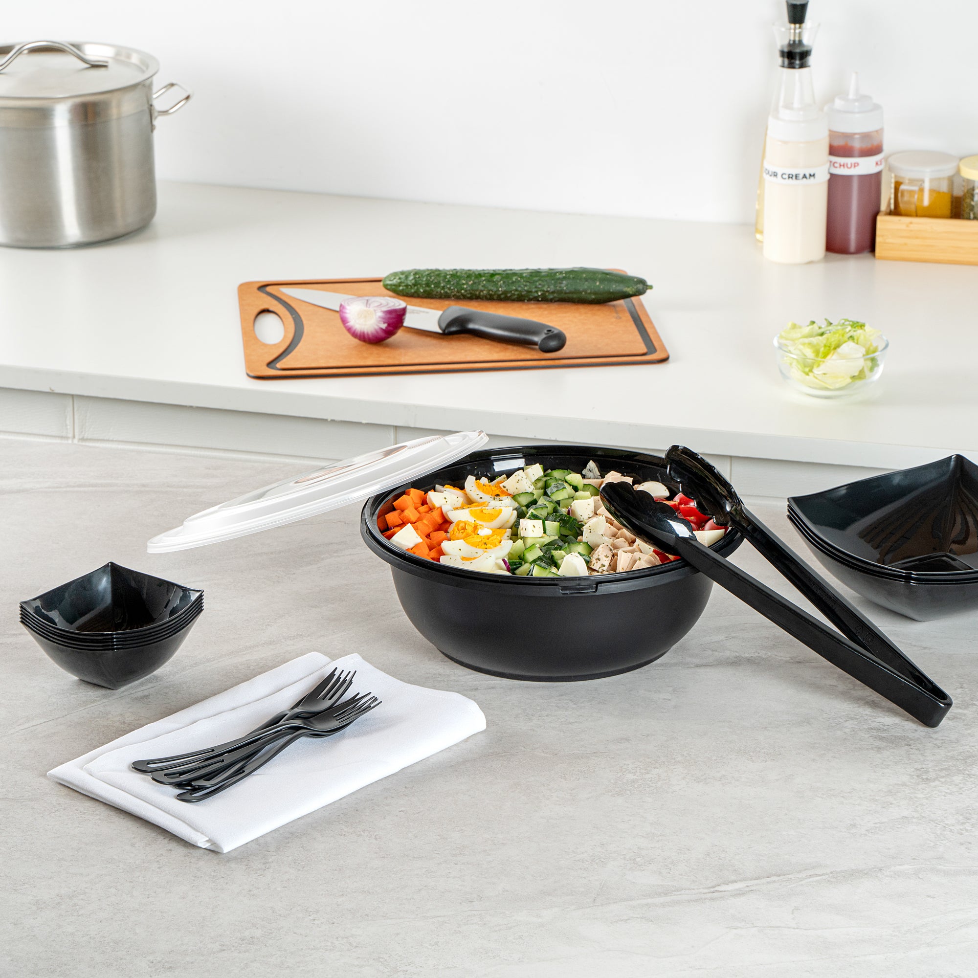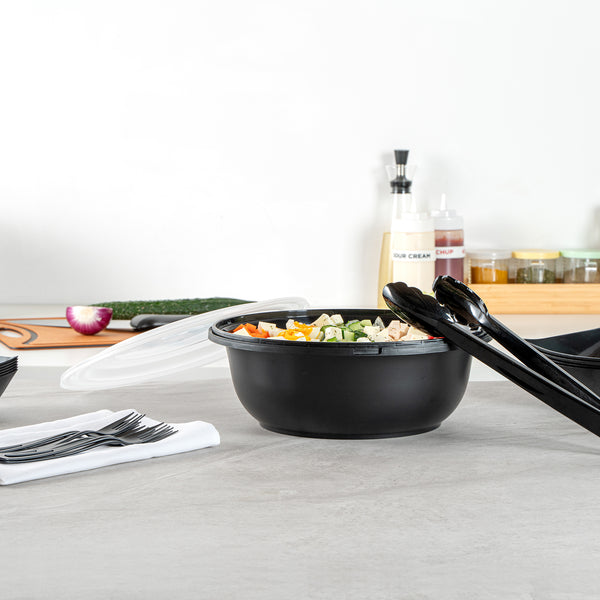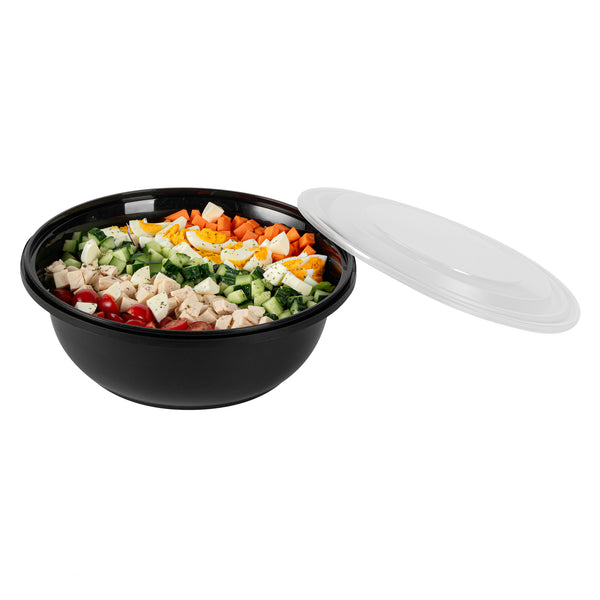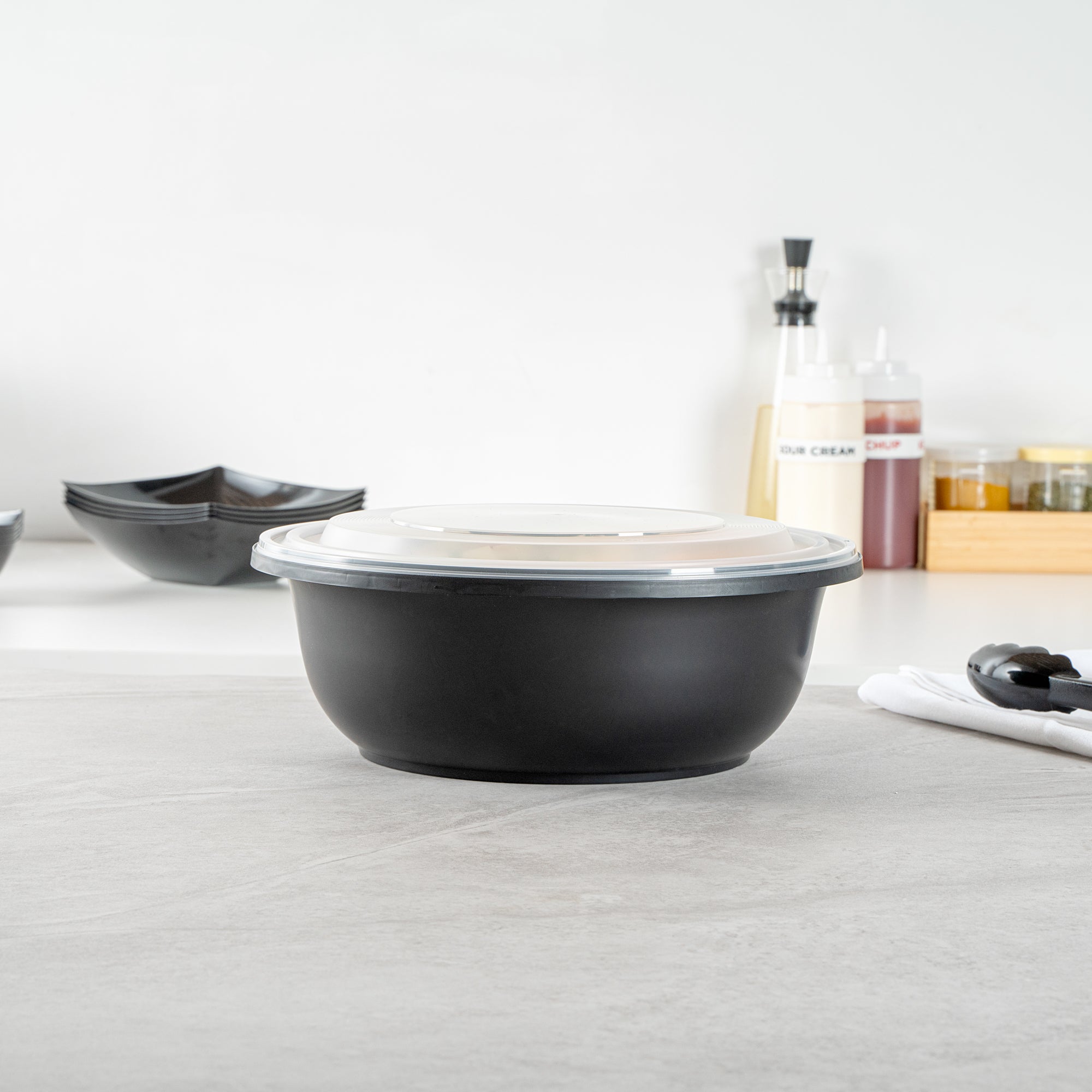 169 OZ ROUND BLACK CATERING / SERVING BOWL - WITH CLEAR LID