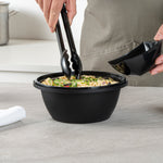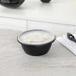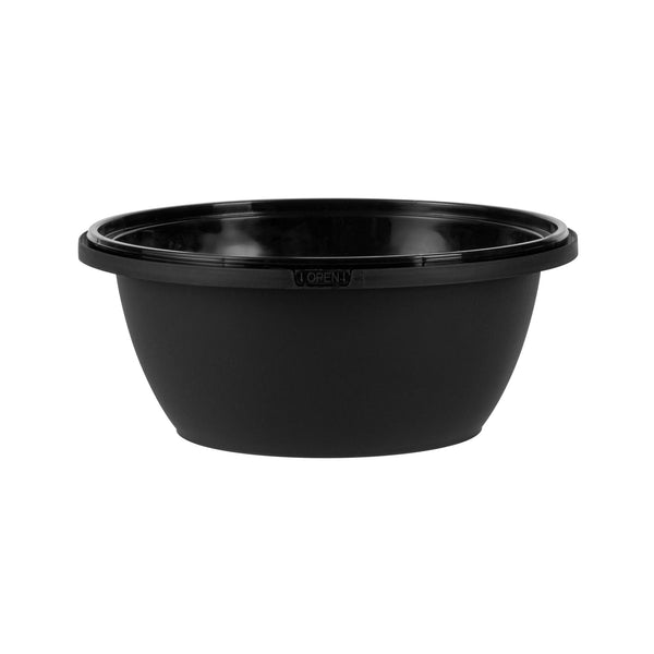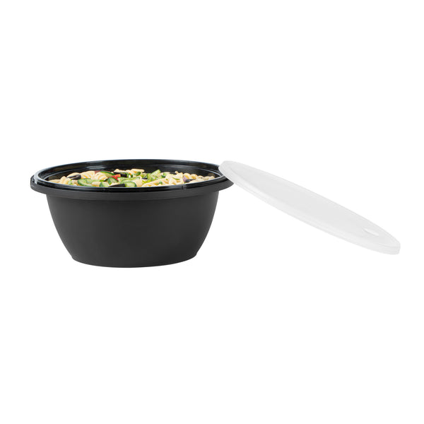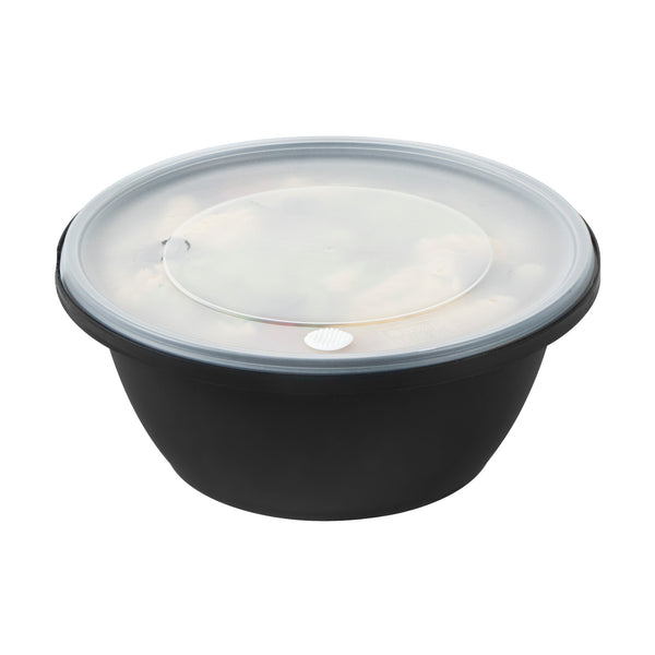 51 OZ ROUND BLACK PLASTIC CATERING / SERVING BOWL - WITH CLEAR LID