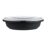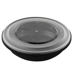 58 OZ ROUND BLACK PLASTIC CATERING / SERVING BOWL - WITH CLEAR LID