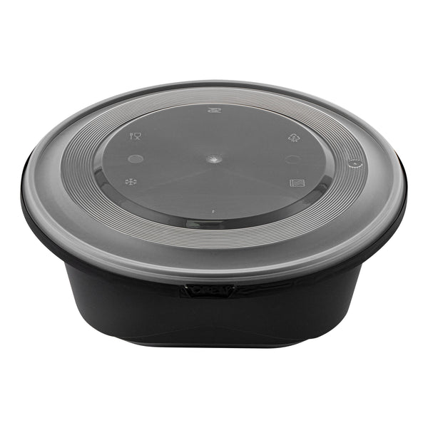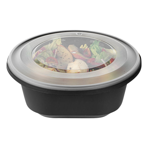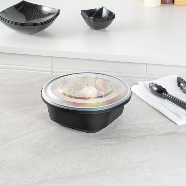 85 OZ ROUND BLACK CATERING / SERVING BOWL - WITH CLEAR LID