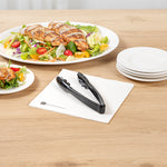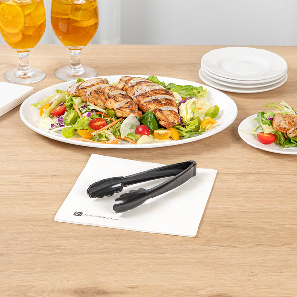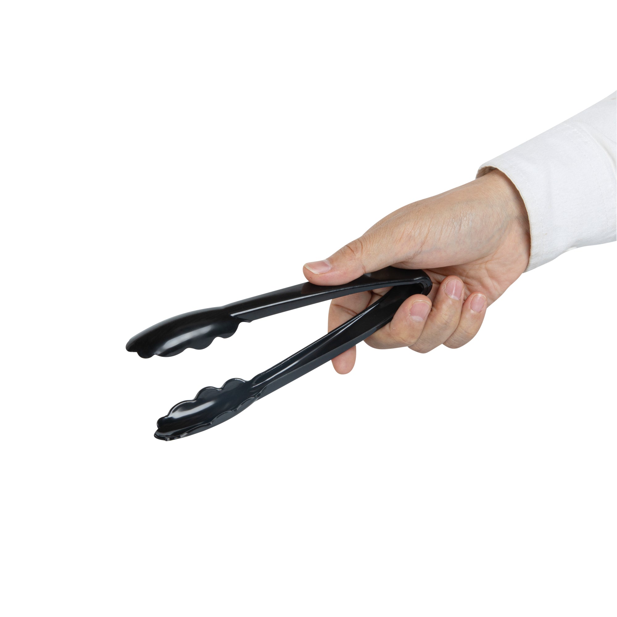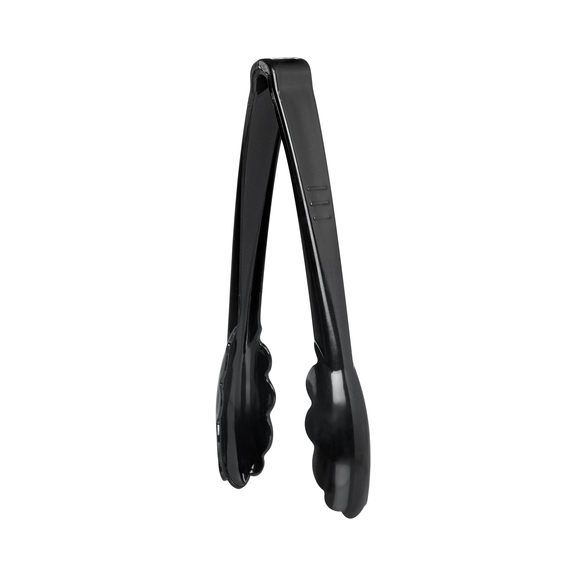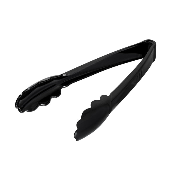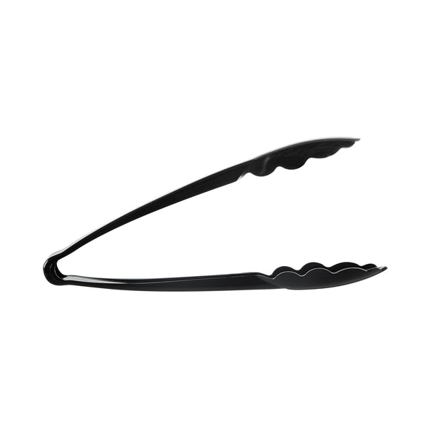 BLACK HEAVY-DUTY DISPOSABLE PLASTIC TONGS - SCALLOPED