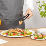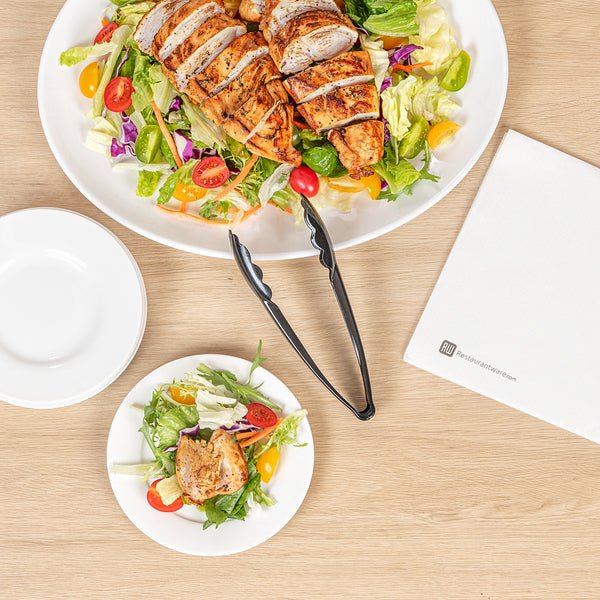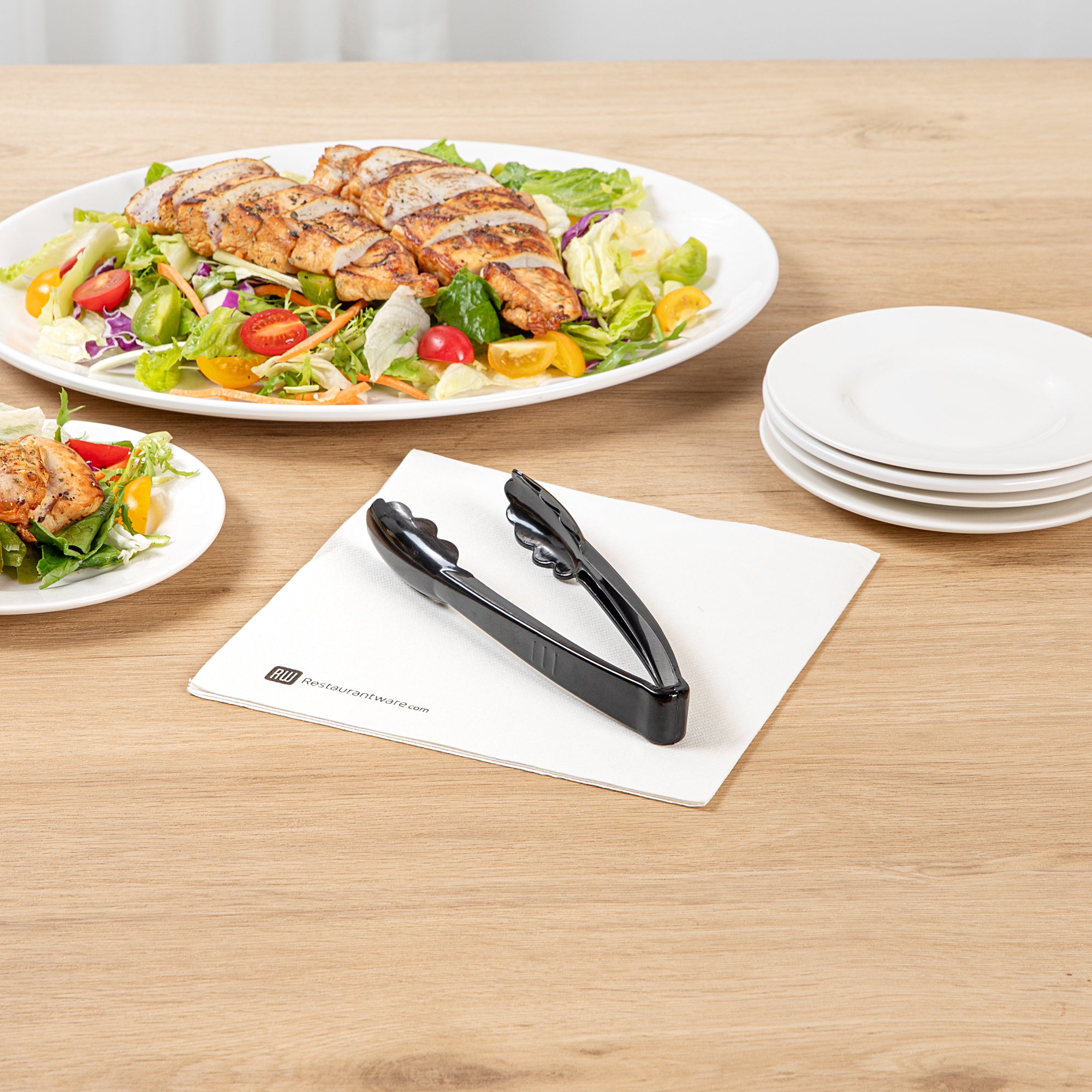 Effortlessly serve food with our Cater Tek Black Heavy-Duty Disposable Plastic Tongs. Made of heavy-duty plastic, these salad tongs are built to last without breaking easily. The scalloped edges of these plastic tongs provide a secure grip on various food items allowing you to serve without accidentally dropping them. These food tongs are food-grade to ensure safety and quality for all your culinary needs. Suitable for use with food at temperatures ranging from -40°F to 176°F, these disposable tongs are versatile to serve various foods including salads, desserts, appetizers, and more. Featuring sturdy handles, these serving tongs are perfect for serving even large food items. Designed to simplify cleaning up, these food tongs are easily disposable and recyclable, making them ideal for catered events, weddings, or buffets, these plastic serving tongs maintain cleanliness at self-service stations. Measuring 7 inches in length by 2 inches in width by 1.25 inches in height, these plastic tongs are compact yet efficient. Sold in a 100 count box.