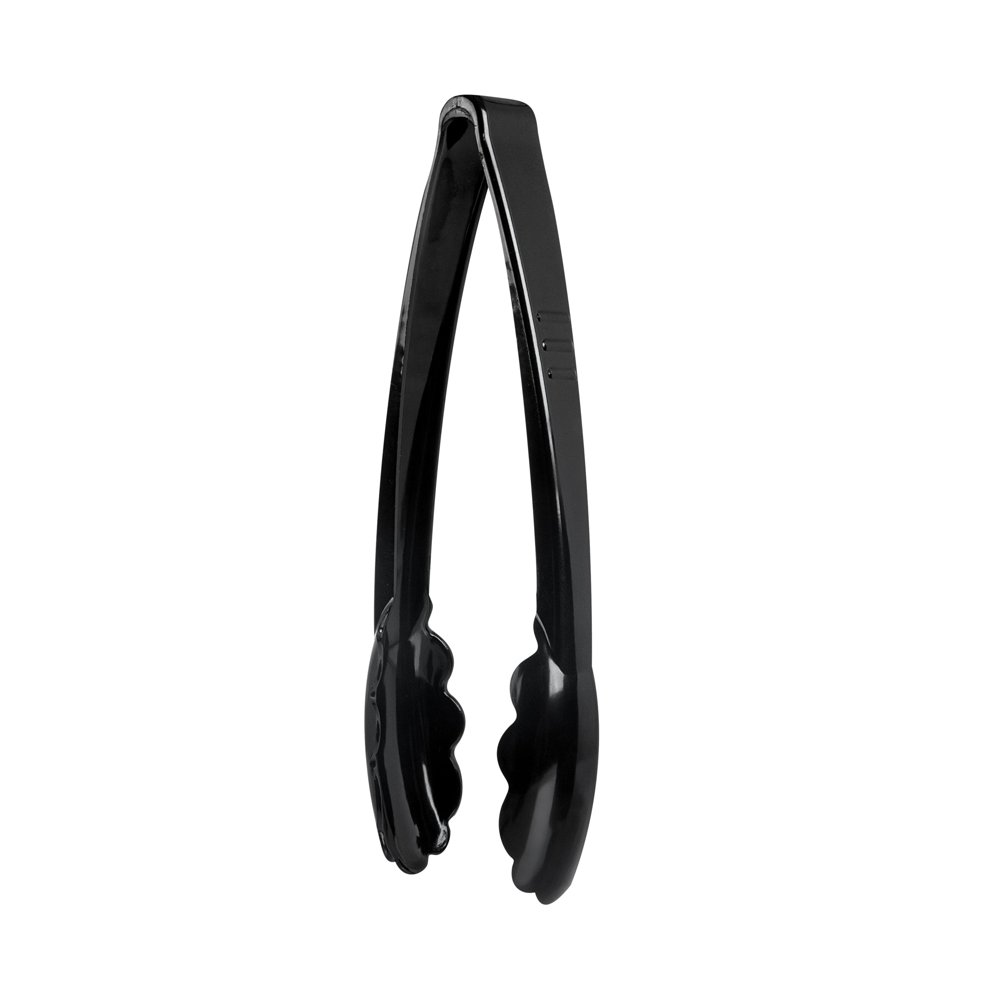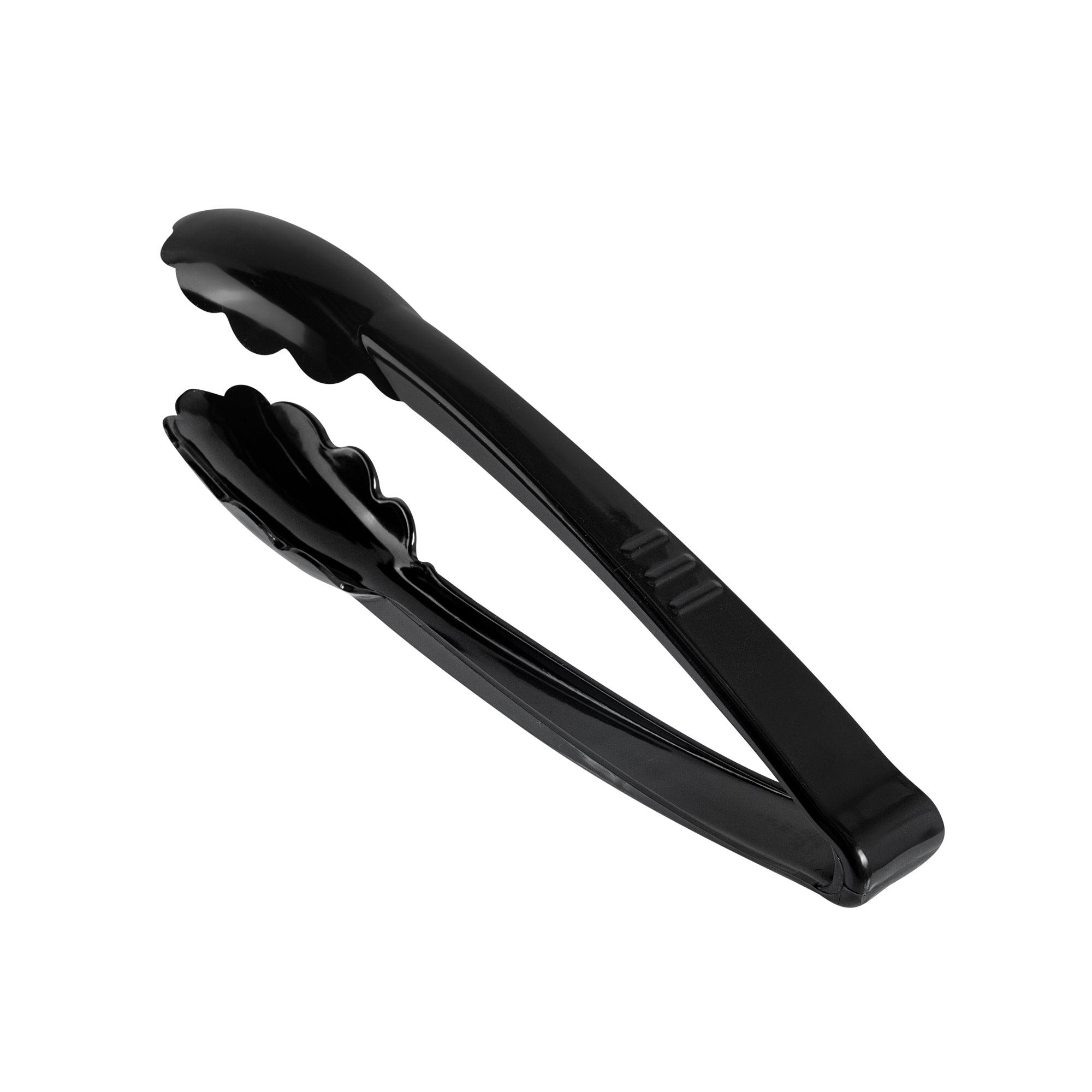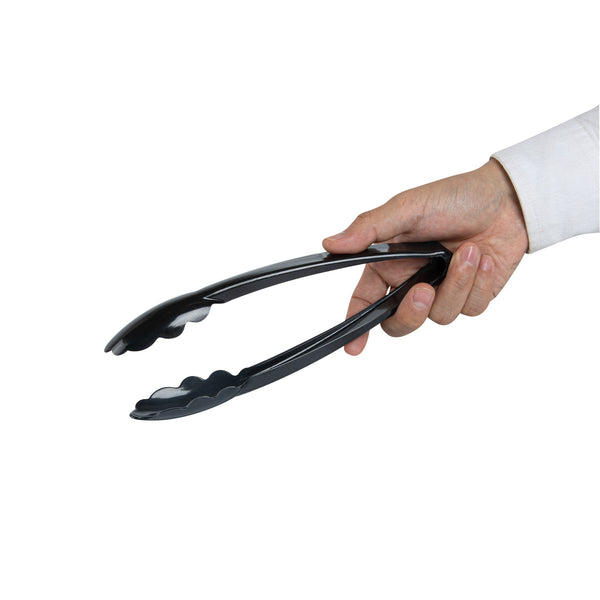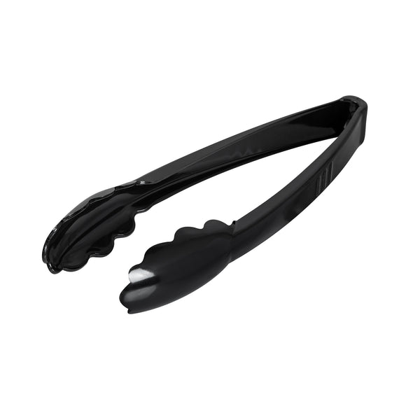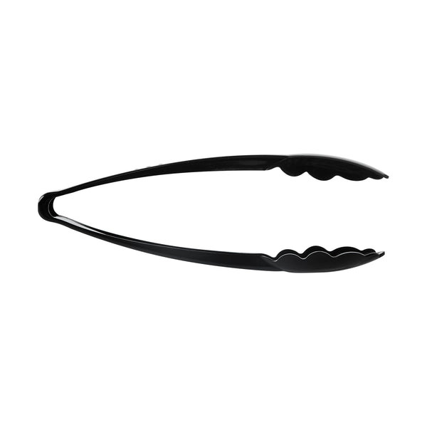 BLACK HEAVY-DUTY DISPOSABLE PLASTIC TONGS - SCALLOPED