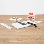 - Serrated cutting edge effortlessly slices through a variety of desserts and provides clean cuts
