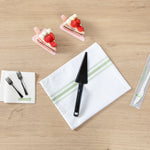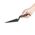 Slice and serve pies, cakes, cheesecakes, quiches, and other tasty treats with our Cater Tek Black Plastic Cake Servers. Featuring a polished black finish and built-in serrated edges, these recyclable plastic cake servers are ideal for birthday parties, weddings, and other catered events. The serrated cutting edge of these pie servers easily slices through juicy pies and dense cakes while their raised handle keeps hands elevated and mess-free. Constructed from high-quality plastic, these disposable pie servers are built to resist bending or breaking, even under hefty slices of your decadent desserts. These cake cutters and servers are made from sturdy plastic that is intended for one-time use but can be lightly hand washed and reused. Each of these black cake servers measures 10 inches in length by 2 inches in width by 1 inch in height. Sold in a 10 count box.