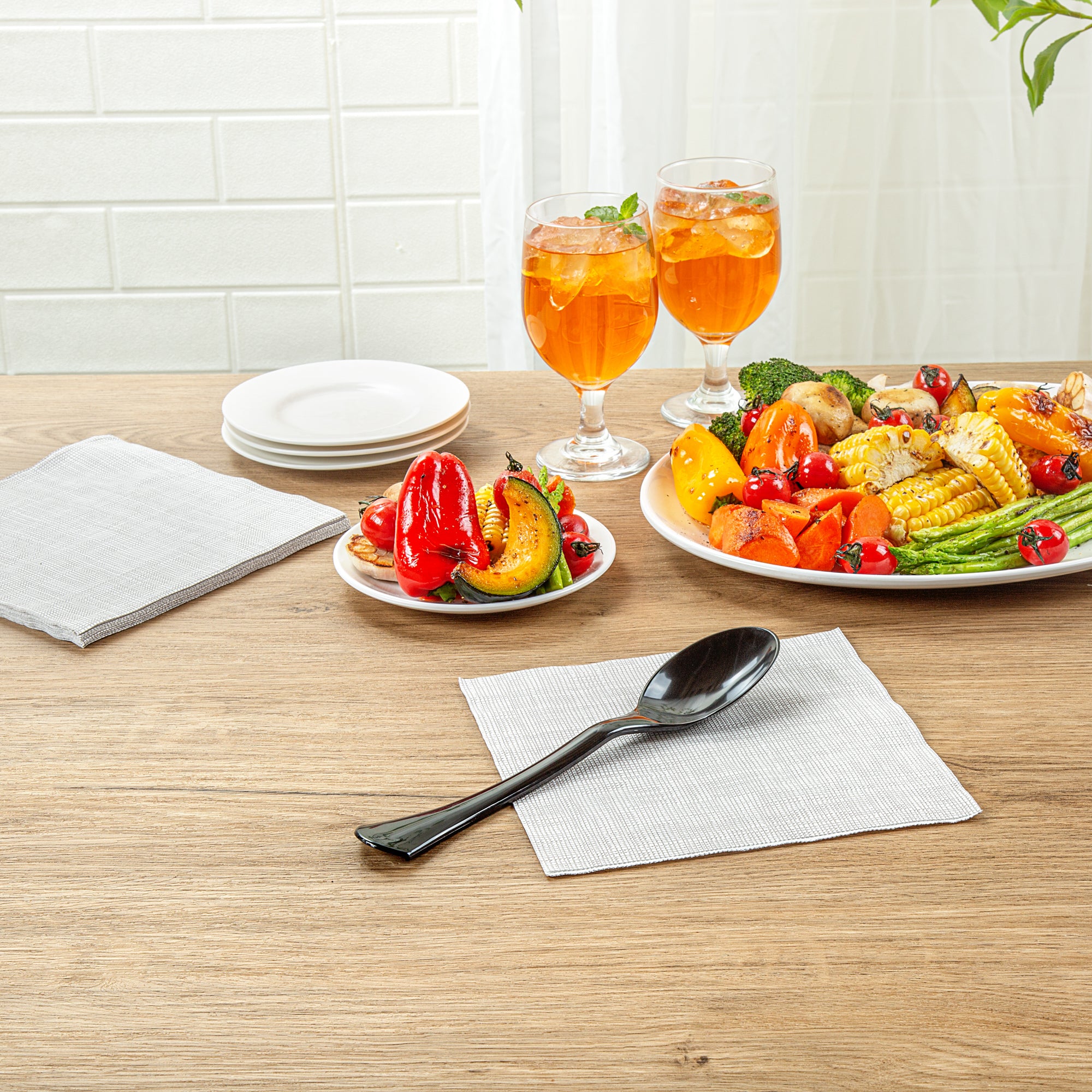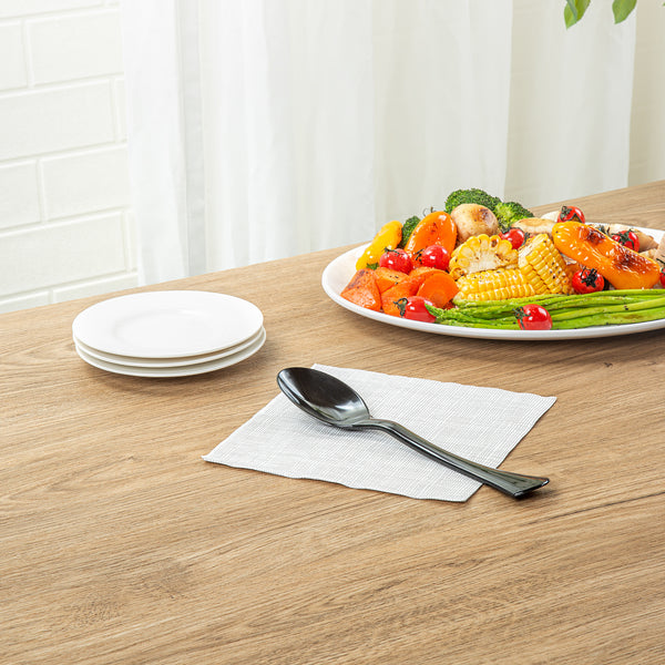 Upgrade your foodservice experience with our Cater Tek Black Plastic Serving Spoons. These large serving spoons feature a generously sized bowl to scoop and serve substantial portions of food efficiently. The ergonomically designed handle of these serving spoons ensures a comfortable grip, making serving easy and efficient while reducing hand strain. Crafted from premium plastic, these disposable spoons are suitable for serving various hot and cold food items, ranging from soups and stews to salads and desserts. With a disposable design, these plastic serving spoons promotes fast and efficient cleanup at the end of your event. The black finish of these disposable serving spoons adds a sleek touch to your buffet setups and enhances their overall appearance. Measuring 9.84 inches in length by 2.24 inches in width, these plastic spoons are perfect for any catering event or buffet setup. Sold in a 10 count box.