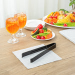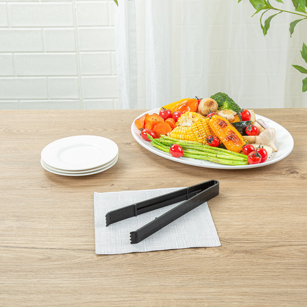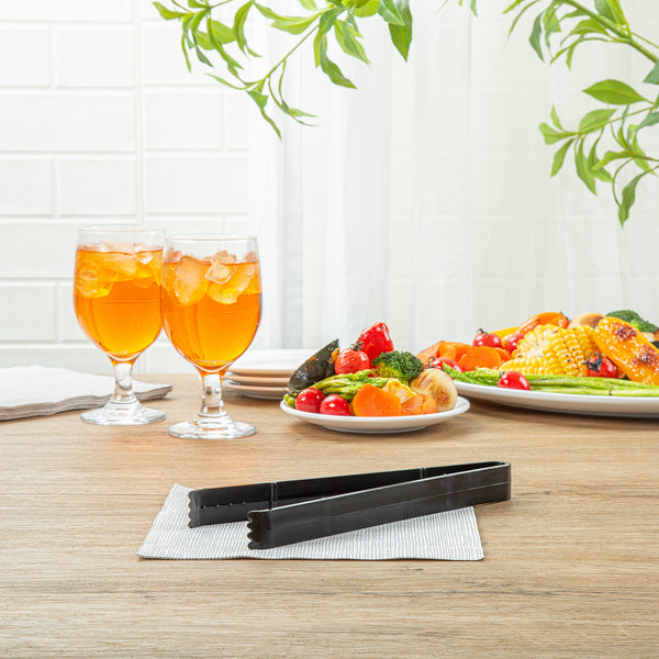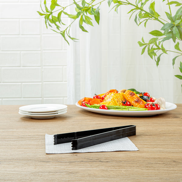 Efficiently handle all your food prep and serving needs with our Cater Tek Black Plastic Tongs. These serving tongs feature serrated tips that ensure a firm hold on food items, preventing slipping and providing better control when handling slippery or delicate foods. Made of premium plastic, these salad tongs are durable and sturdy, making them ideal for handling cold and hot food items with ease and reliability. With a heavy-duty design, these plastic plating tongs withstand fast-paced settings, ensuring reliability and durability even under high-traffic service. The long handles of these plastic tongs offer a comfortable grip and extended reach, making it easier to serve dishes and manage food from a distance. These food tongs are disposable and can be discarded after use, providing a quick cleaning experience after a large social gathering. The black finish of these disposable tongs lends stylish look to your catering event. Measuring 9 inches in length by 3.54 inches in width, these appetizer tongs offer ample reach and control. Sold in a 10 count box.
