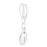 - Innovative scissor design with a spoon and fork combo securely grasps tasty offerings