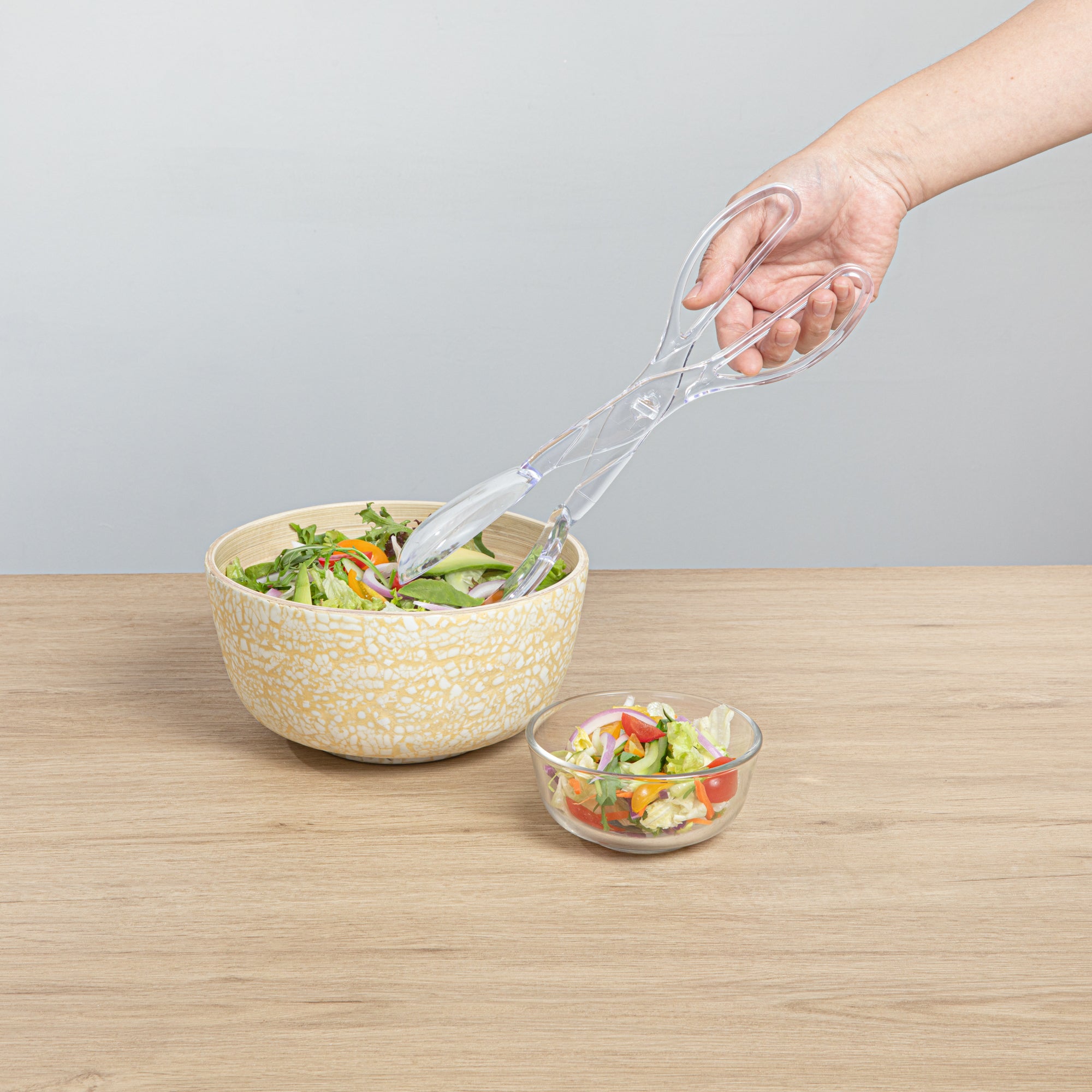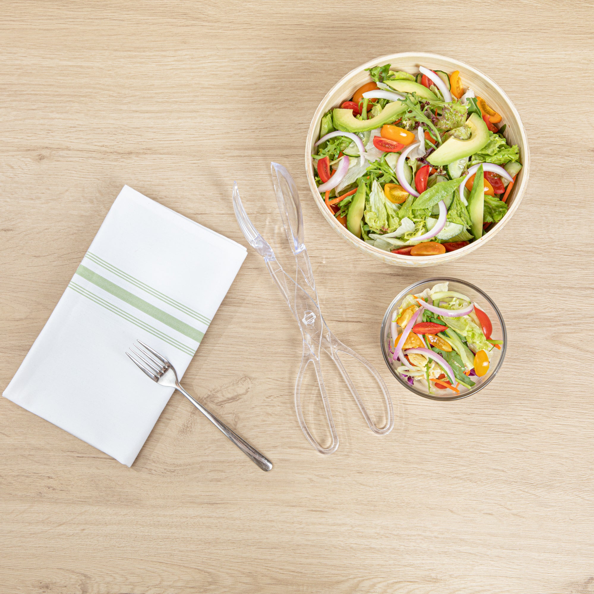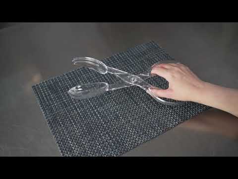 Easily serve fresh salads and more with our Cater Tek Clear Plastic Salad Tongs. Crafted from premium plastic, these durable serving tongs are recyclable and provide a convenient cleaning solution for your buffet, restaurant, or catering event. Featuring an innovative scissor design with a spoon and fork combo, these salad serving tongs securely grasp tasty offerings for easily serving crisp salads to your guests. These salad tongs are made from sturdy plastic that is intended for one-time use but can be lightly hand washed and reused. Measuring 11.5 inches long by 2.75 inches wide by 2.75 inches tall, these clear plastic salad tongs seamlessly serve delicious Greek salad at your restaurant or savory Italian pasta salad at your catered events. Shipped in a 10 count box.