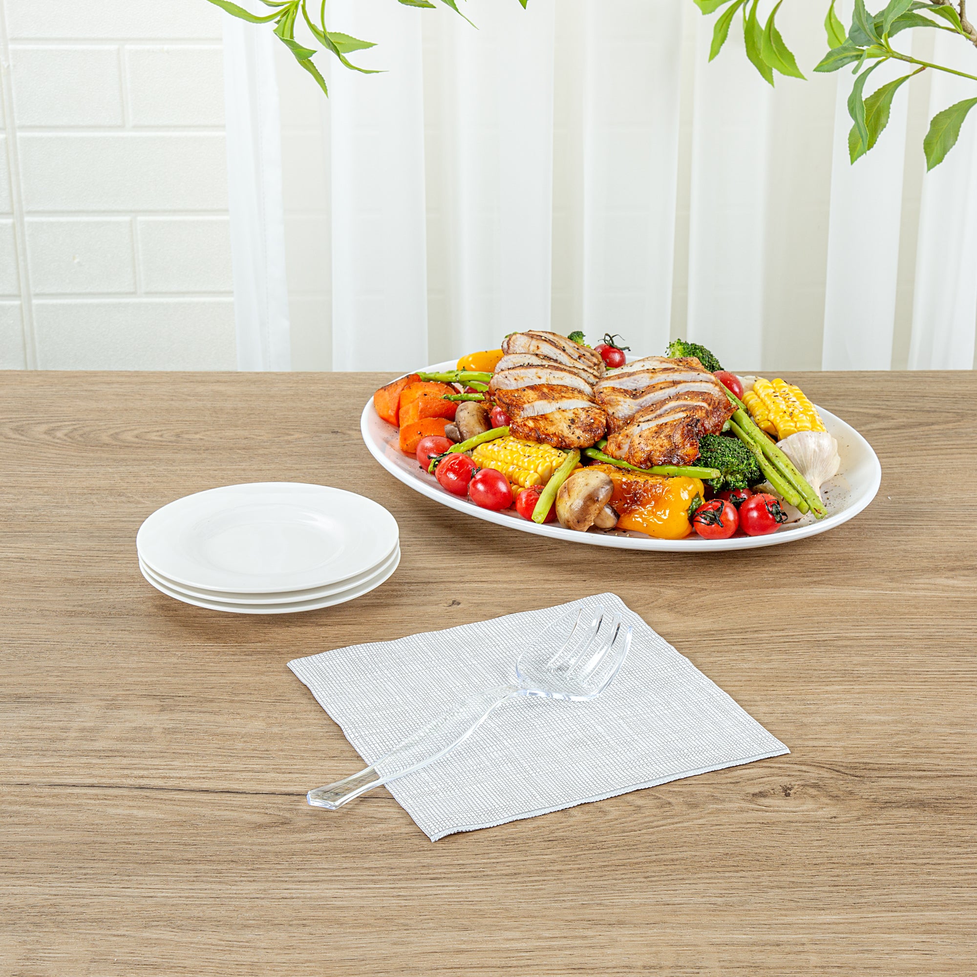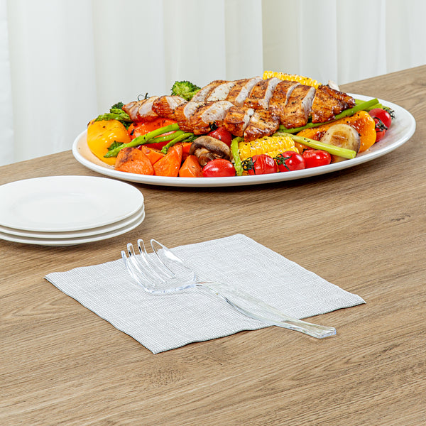 Elevate your dining experience with our Cater Tek Clear Plastic Serving Forks. These serving forks feature four prongs that allow users to effectively pick up foods for quick service, making them an essential addition to any event. Designed with an ergonomic handle, these plastic forks offer comfortable handling and easy grip, making them ideal for casual dining or events. These salad forks are created from premium plastic and are perfect for handling hot and cold food items. To promote a straightforward post-event cleaning experience, these disposable forks can be discarded after use. The clear finish of these plastic serving forks enhances their elegance while allowing them to blend effortlessly with any table setting. Measuring 8.5 inches in length by 2.36 inches in width, these disposable plastic forks are the perfect size for serving a variety of dishes. Sold in a 10 count box.