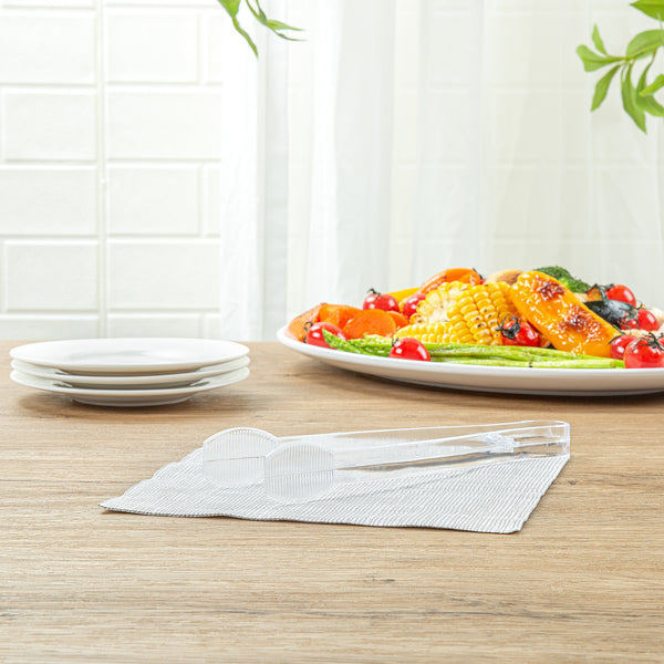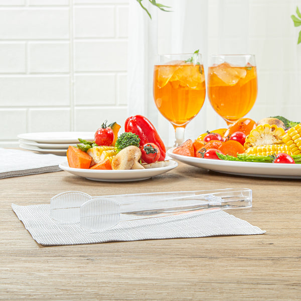 Effortlessly elevate your foodservice experience with our Cater Tek Clear Plastic Tongs. These serving tongs are designed with ridged tips that enhance grip and stability, ensuring you can securely handle a variety of food items. Made of premium plastic, these food tongs are durable and sturdy, making them ideal for handling hot and cold food items. The long handle of these salad tongs provides a comfortable grip and extended reach, making it easy to serve and toss salads. These disposable tongs can be discarded after use and ensure an efficient post-event cleaning experience. The clear finish of these plastic tongs adds a sleek and modern look to your food catering event. Measuring 9 inches in length by 1.25 inches in width, these appetizer tongs are the perfect size for versatile use. Sold in a 10 count box.