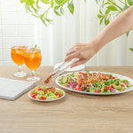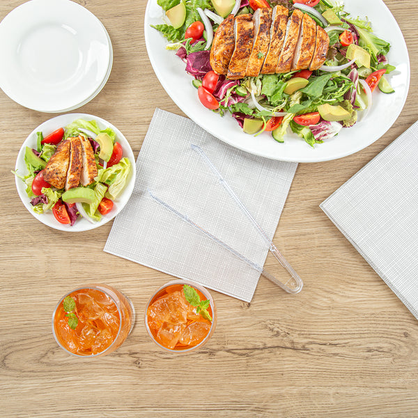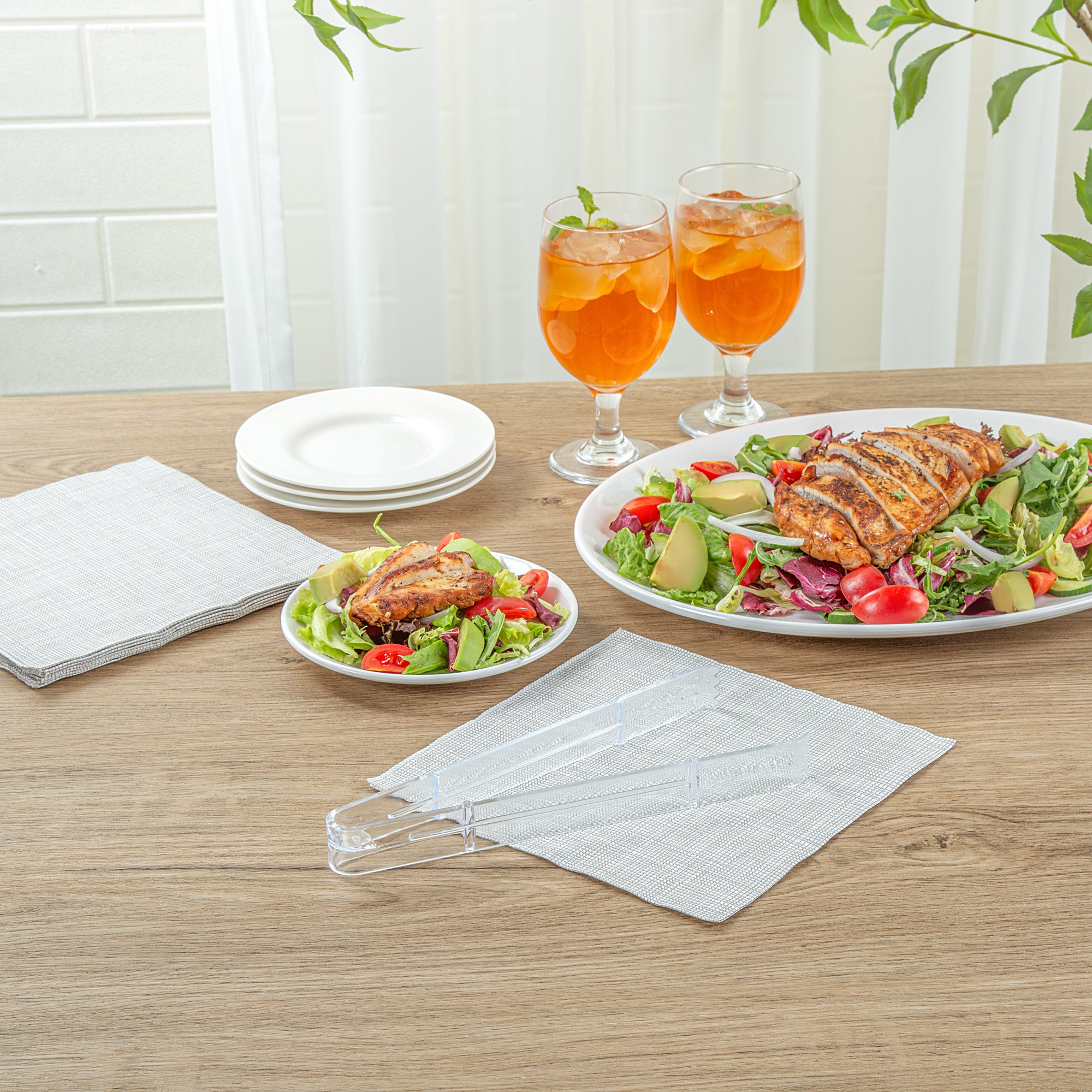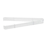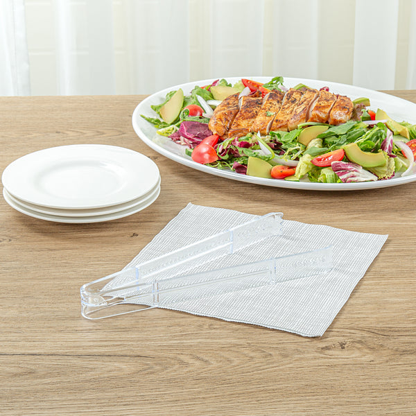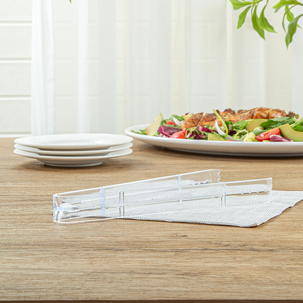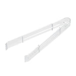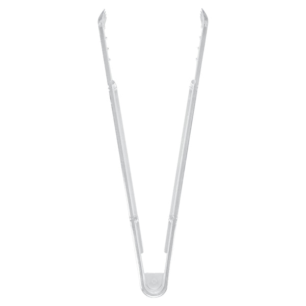 Ensure easy food presentation with our Cater Tek Clear Plastic Tongs. These serving tongs have serrated tips, providing a firm hold on food items and preventing slipping for better control. Crafted from premium plastic, these salad tongs are durable and sturdy, making them suitable for serving hot and cold food items. Boasting a heavy-duty design, these plastic plating tongs withstand frequent use in high-traffic service, ideal for bustling buffets and catering events. Designed with long handles, these plastic tongs make serving and handling food easier by providing a comfortable grip and extended reach. These food tongs are disposable and can be tossed after use, providing a simplified cleanup after meals. With a clear finish, these disposable tongs creates a sophisticated look at your catering event. Measuring 9 inches in length by 3.54 inches in height, these appetizer tongs offer functionality and ease of handling. Sold in a 10 count box.