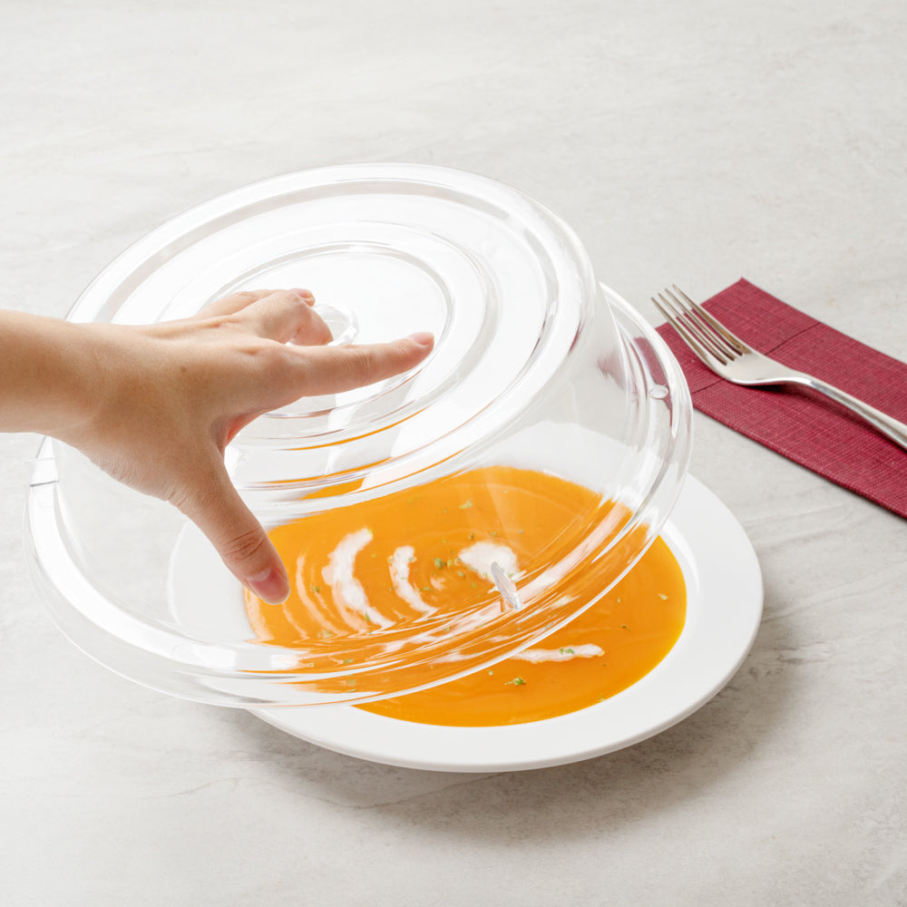 Featuring a finger-hole design, these food splatter covers can be conveniently lifted without getting scalded by heat. To avoid condensation, these plastic covers also let excess moisture out.