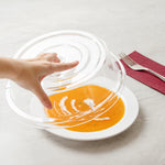 Featuring a finger-hole design, these food splatter covers can be conveniently lifted without getting scalded by heat. To avoid condensation, these plastic covers also let excess moisture out.