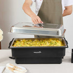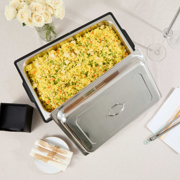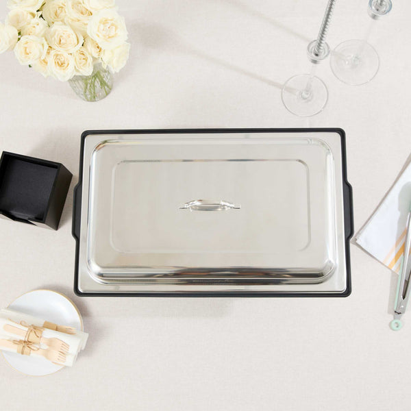 Enhance food presentation with our Cater Tek Full Size Stainless Steel Chafer Cover. Made from durable stainless steel, this rectangular chafing lid with handle ensures a secure seal on industry-standard water and food pans, keeping food protected from the elements and warm throughout service. This feature is vital for catering and buffet displays where maintaining optimal serving temperature is crucial. Its freezer-safe feature also supports versatility, allowing use in various foodservice settings. Additionally, this stainless steel dome cover is dishwasher-safe, ensuring a quick turnaround in busy kitchens. The silver finish adds a sleek touch to any catering ensemble. This lid measures 21.1 inches in length by 12.91 inches in width by 2.98 inches in height. Sold in a 1 count box.