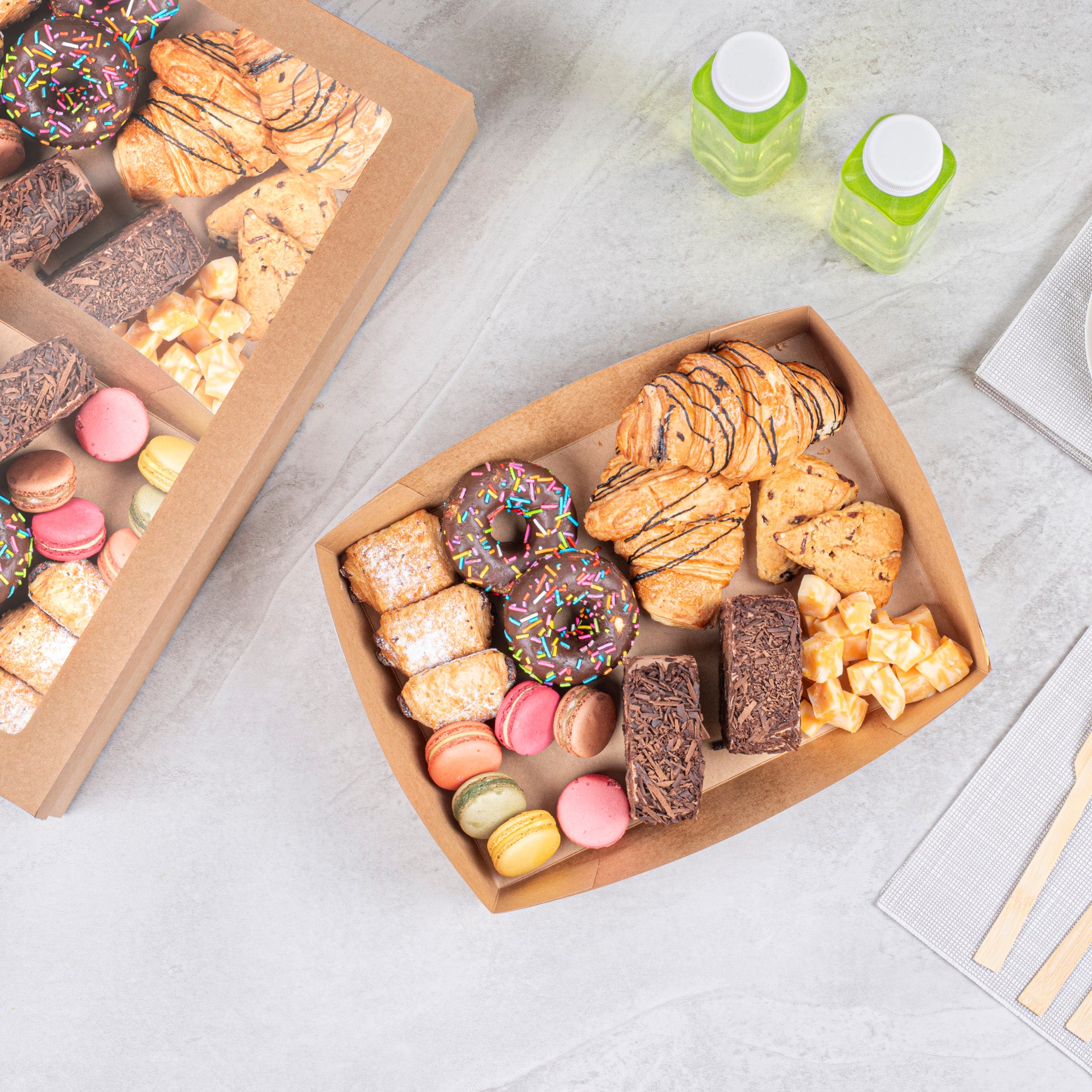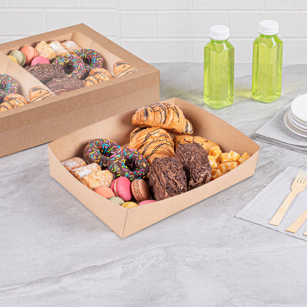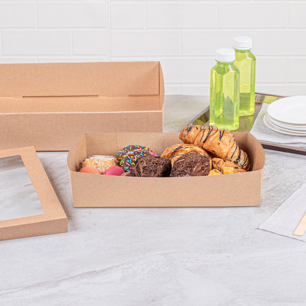 Optimize your food presentation with our Cater Tek Grease-Resistant Catering Box. This kraft paper box with PE coating features a grease-resistant lining, ensuring that even your sauciest dishes remain secure and leak-free during transport. Designed for efficiency, this kraft box ships flat to save valuable storage space and reduce operational costs. With dimensions of 11.5 inches in length, 8.2 inches in width, and 2.4 inches in height, it accommodates a wide range of cold and hot foods, with its hot food-friendly design maintaining the temperature of your dishes for optimal service. Made from sturdy paper, this box is both freezer-safe and versatile for various catering needs. Enhance your foodservice capabilities today with this essential catering box. Each order includes 20 Cater Tek Grease-Resistant Catering Box.