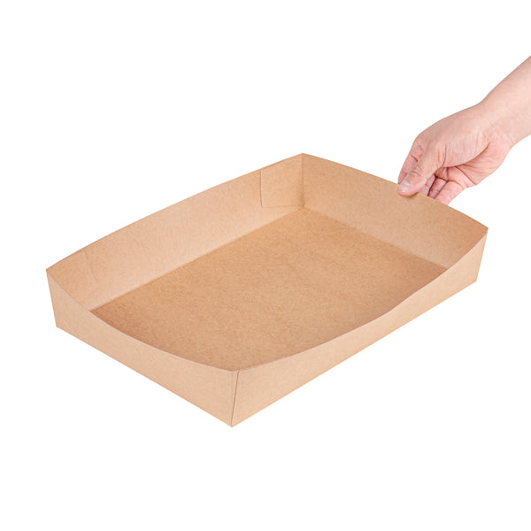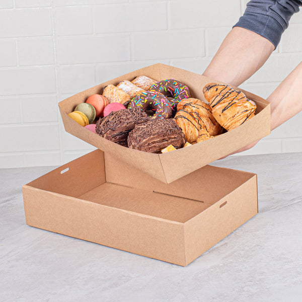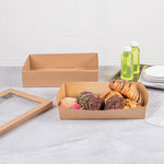 Ensure clean and efficient catering with leak-resistant food boxes. The Cater Tek Grease-Resistant Kraft Paper Box features a grease-resistant lining, expertly designed to prevent messy leaks and spills, making it ideal for saucy dishes. This kraft paper box is constructed from sturdy paper with a PE coating, measuring 13.5 inches in length, 9.2 inches in width, and 2.4 inches in height, it ships flat to save valuable storage space and reduce clutter in your kitchen. The easy assembly design significantly speeds up setup for catering events, allowing foodservice professionals to focus on delivering exceptional service. Each order includes 100 Cater Tek Grease-Resistant Kraft Paper Boxes.