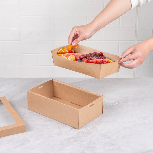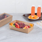 Ensure flawless food delivery with Cater Tek Grease-Resistant Kraft Paper Box. Designed with a grease-resistant lining, this kraft paper box safeguards against oily dishes, making it ideal for transporting saucy or buttery meals without mess. As an efficient catering delivery box, it ships flat and is easy to assemble, streamlining your prep time and optimizing storage space. Engineered for versatility, this box supports both hot and cold foods, providing a reliable solution for diverse menu items. Measuring 9.25 inches in length and constructed from durable paper with a PE coating, it ensures sturdiness and protection during transit. Elevate your food presentation with this attractive windowed food box, perfect for showcasing your culinary creations. Enhance your catering operations and maintain food quality with this dependable option. Each order includes 10 Cater Tek Grease-Resistant Kraft Paper Box.