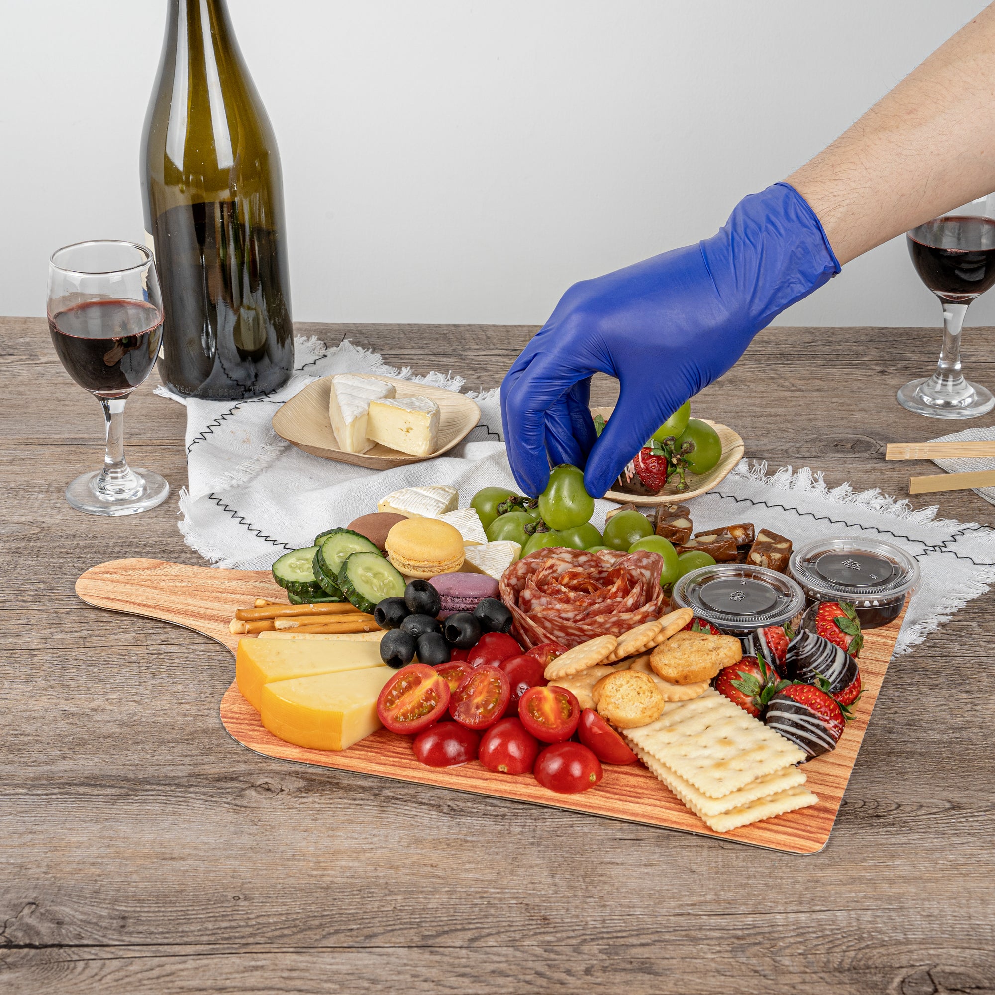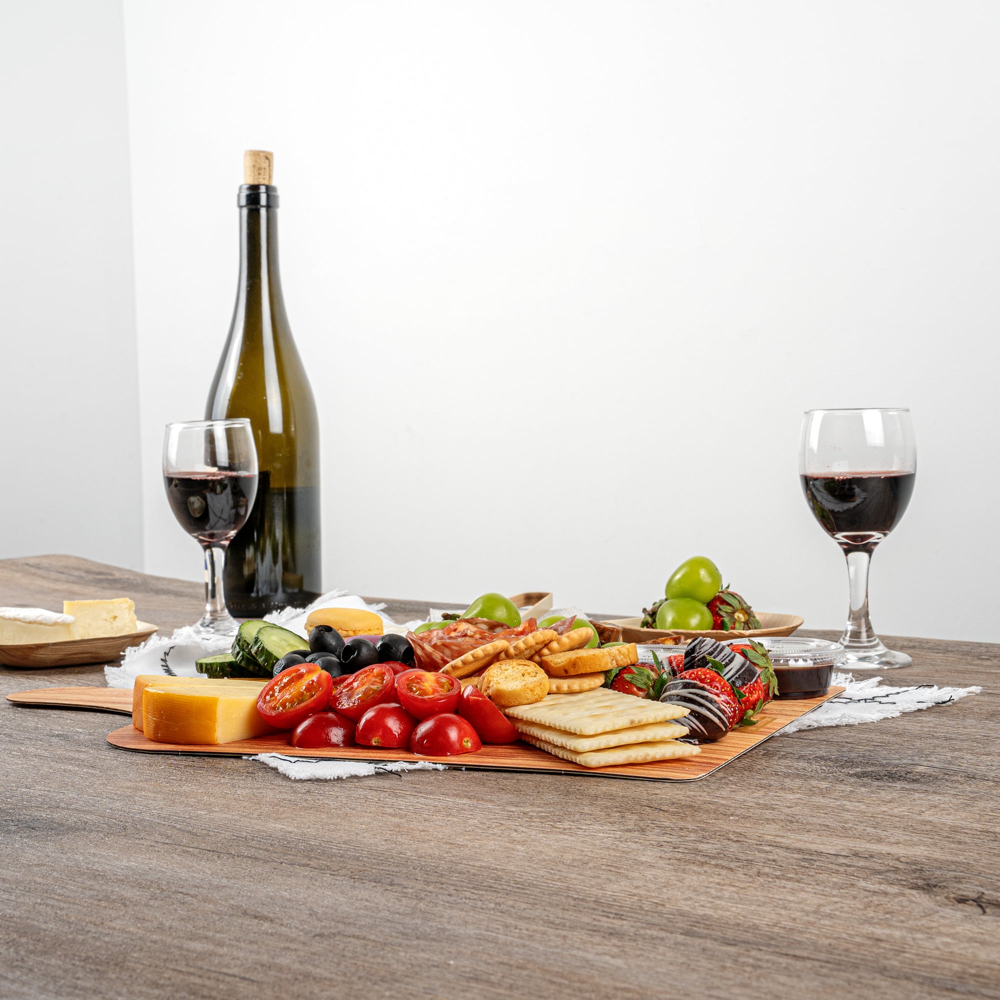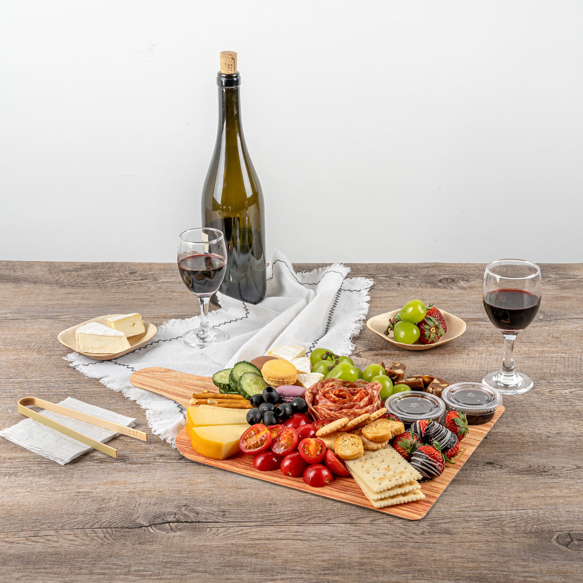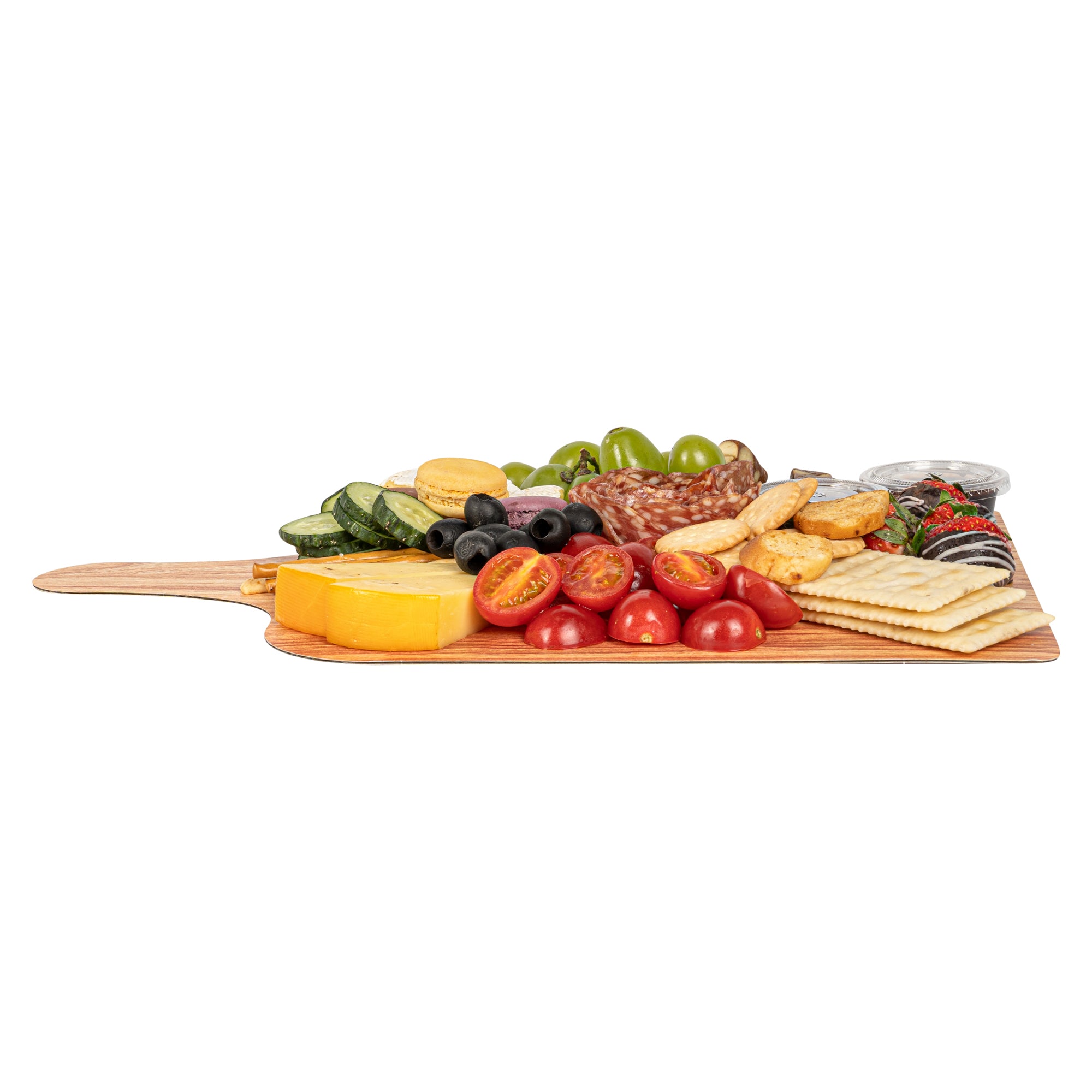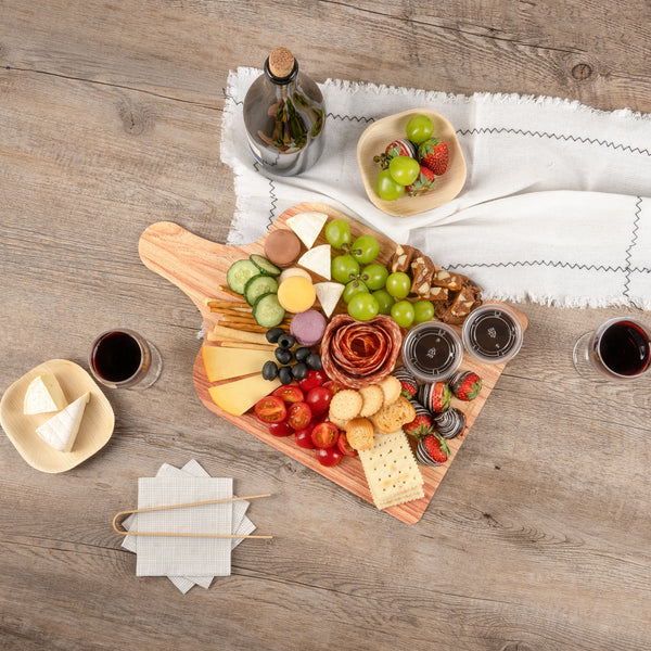 Elevate your food presentation with our Cater Tek Natural Cheese / Charcuterie Boards. These food trays are designed with a faux wood finish, adding a touch of rustic elegance to any food service. Ideal for serving both hot and cold dishes, these food trays ensure versatility in any setting. The cheese tray's durable paper material is designed for strength and stability, making it perfect for holding a variety of foods. Plus, the added side handle enhances convenience in carrying and serving, making these catering trays a preferred choice for eateries, bakeries, and catering companies. These paper food trays are conveniently stackable, saving valuable storage space in your kitchen or pantry. Measuring 15.8 inches in length by 9.8 inches in width, these disposable food platters are ideal for serving a variety of delicacies, from cheeses to charcuterie. Sold in a 100 count box.