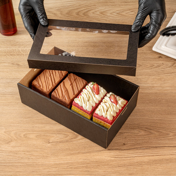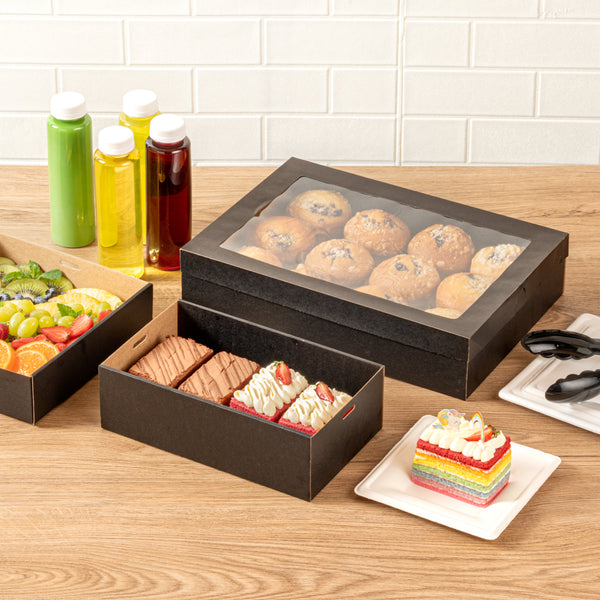 RECTANGLE BLACK PAPER CATERING BOX - WITH WINDOW LID