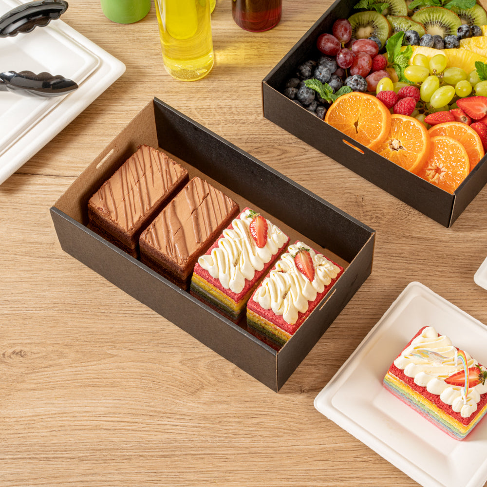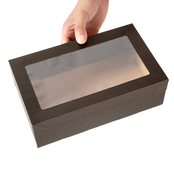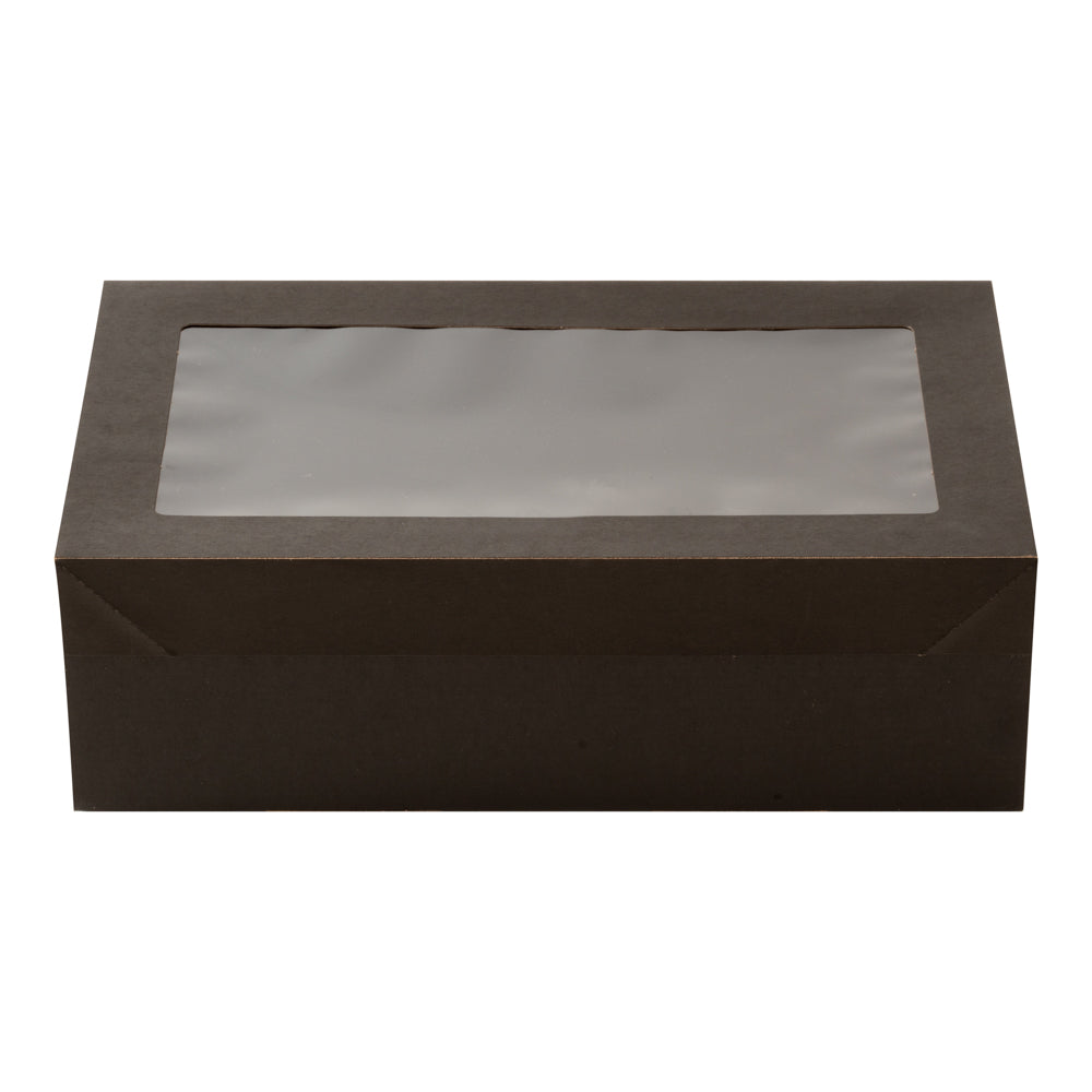 RECTANGLE BLACK PAPER CATERING BOX - WITH WINDOW LID