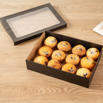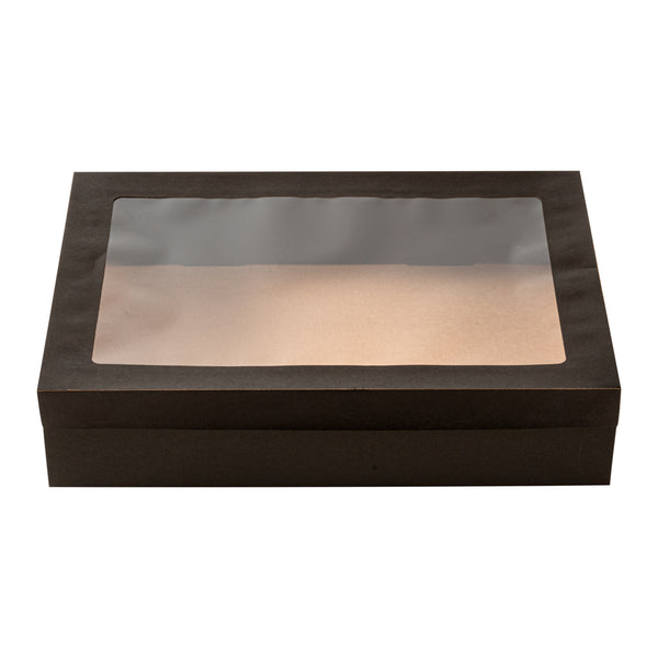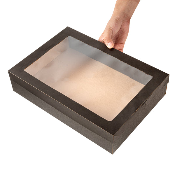 RECTANGLE BLACK PAPER CATERING BOX - WITH WINDOW LID