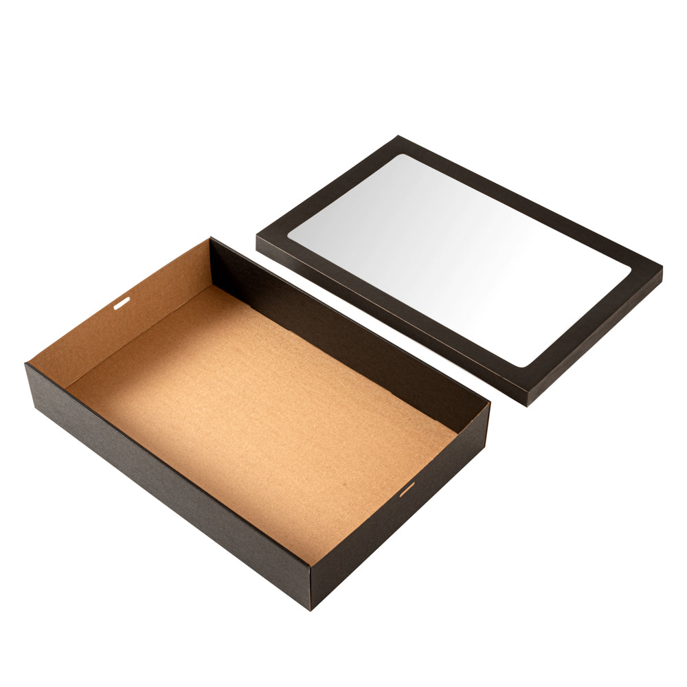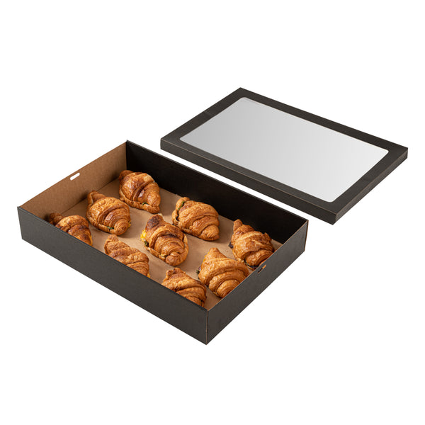 RECTANGLE BLACK PAPER CATERING BOX - WITH WINDOW LID