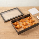 Cater Tek Rectangle Black Paper Catering Box - with Window Lid - 18