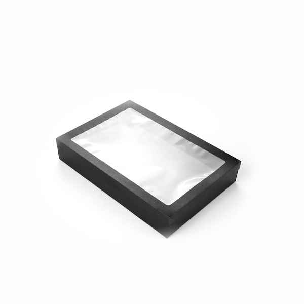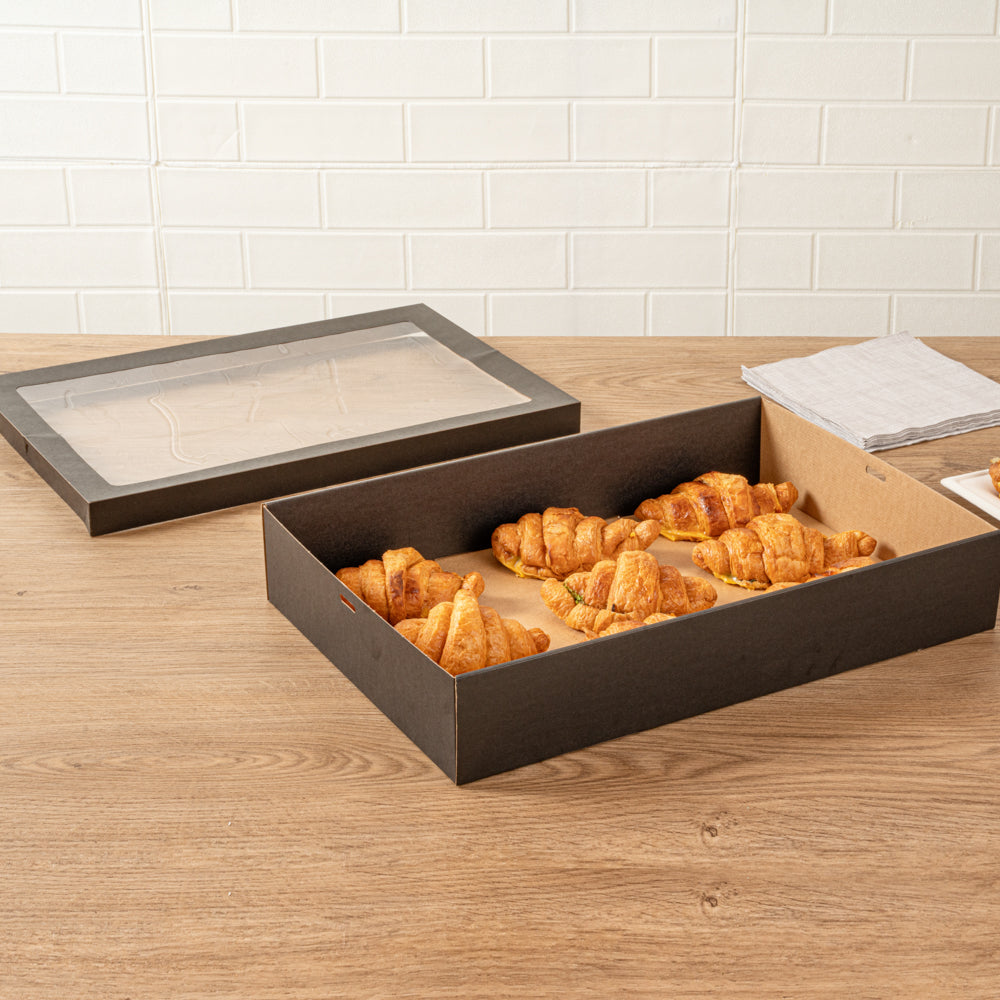 RECTANGLE BLACK PAPER CATERING BOX - WITH WINDOW LID