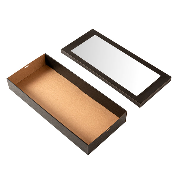 RECTANGLE BLACK PAPER CATERING BOX - WITH WINDOW LID