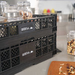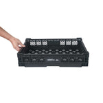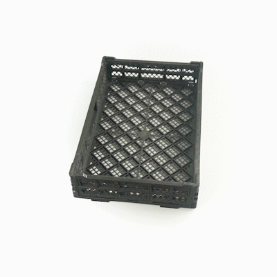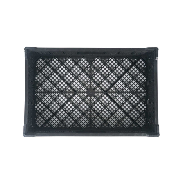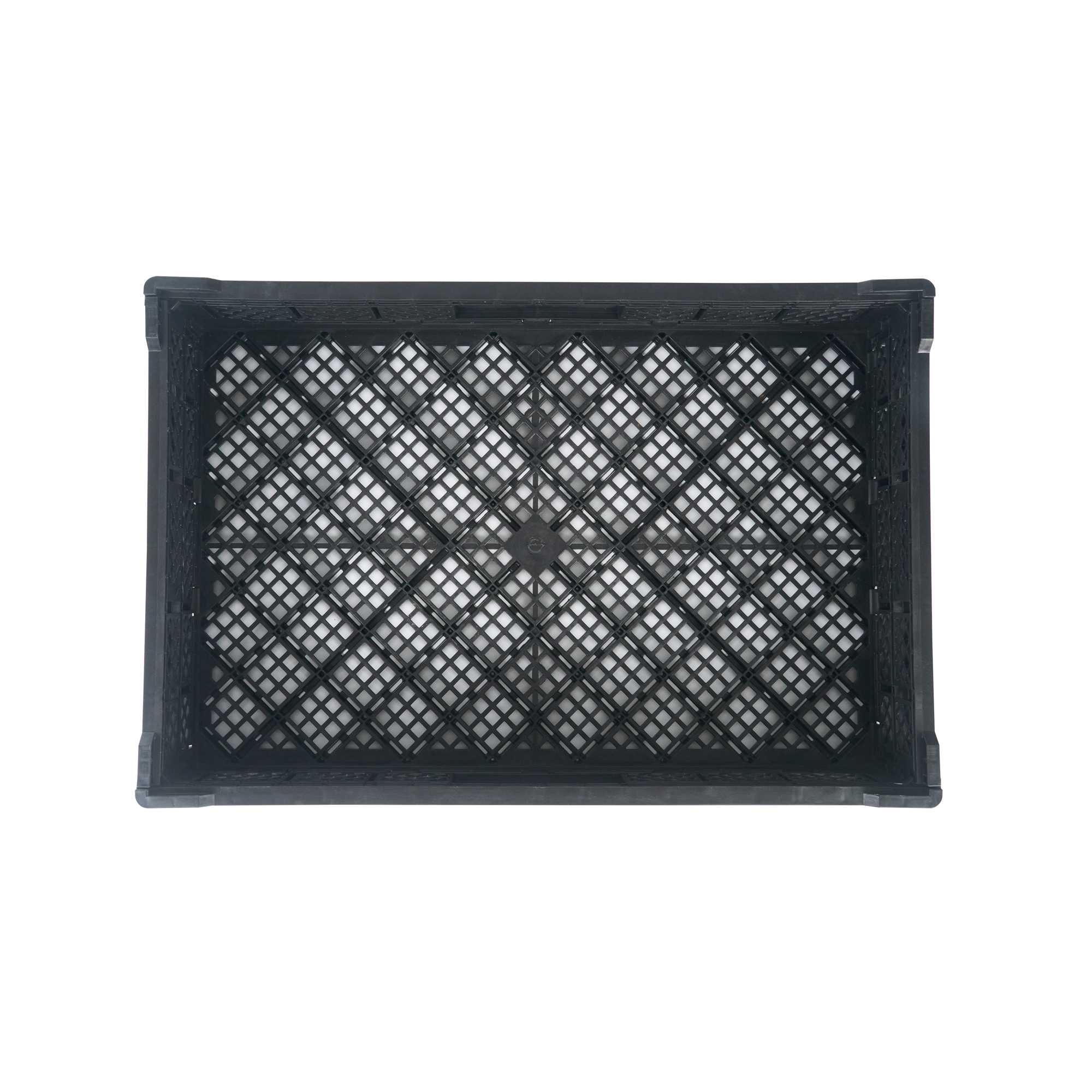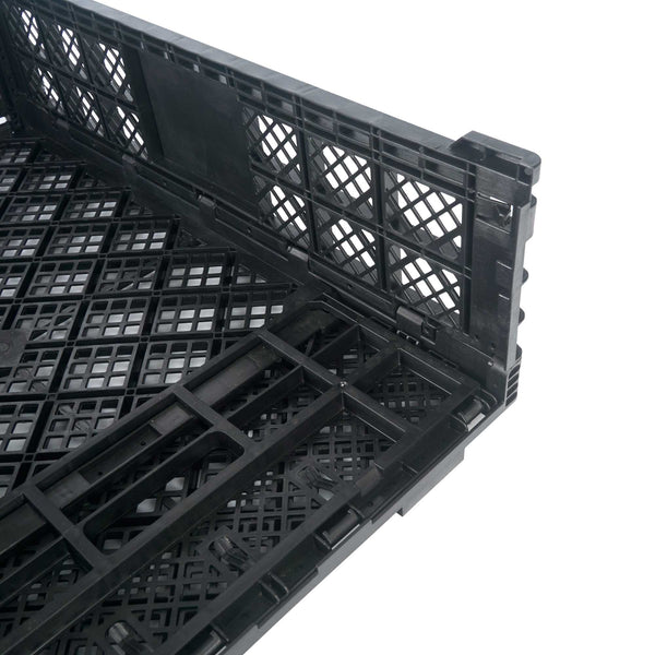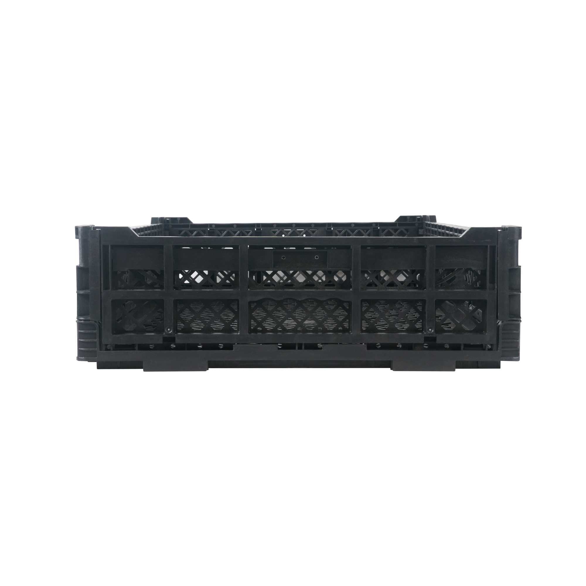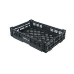 RECTANGLE BLACK PLASTIC COLLAPSIBLE CRATE - VENTED, STACKABLE