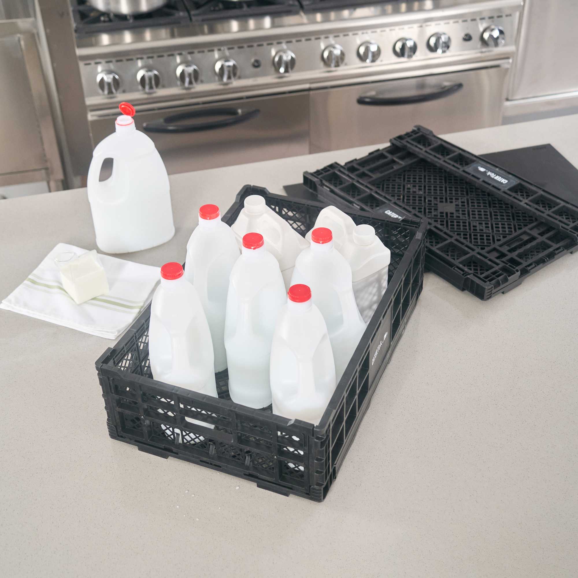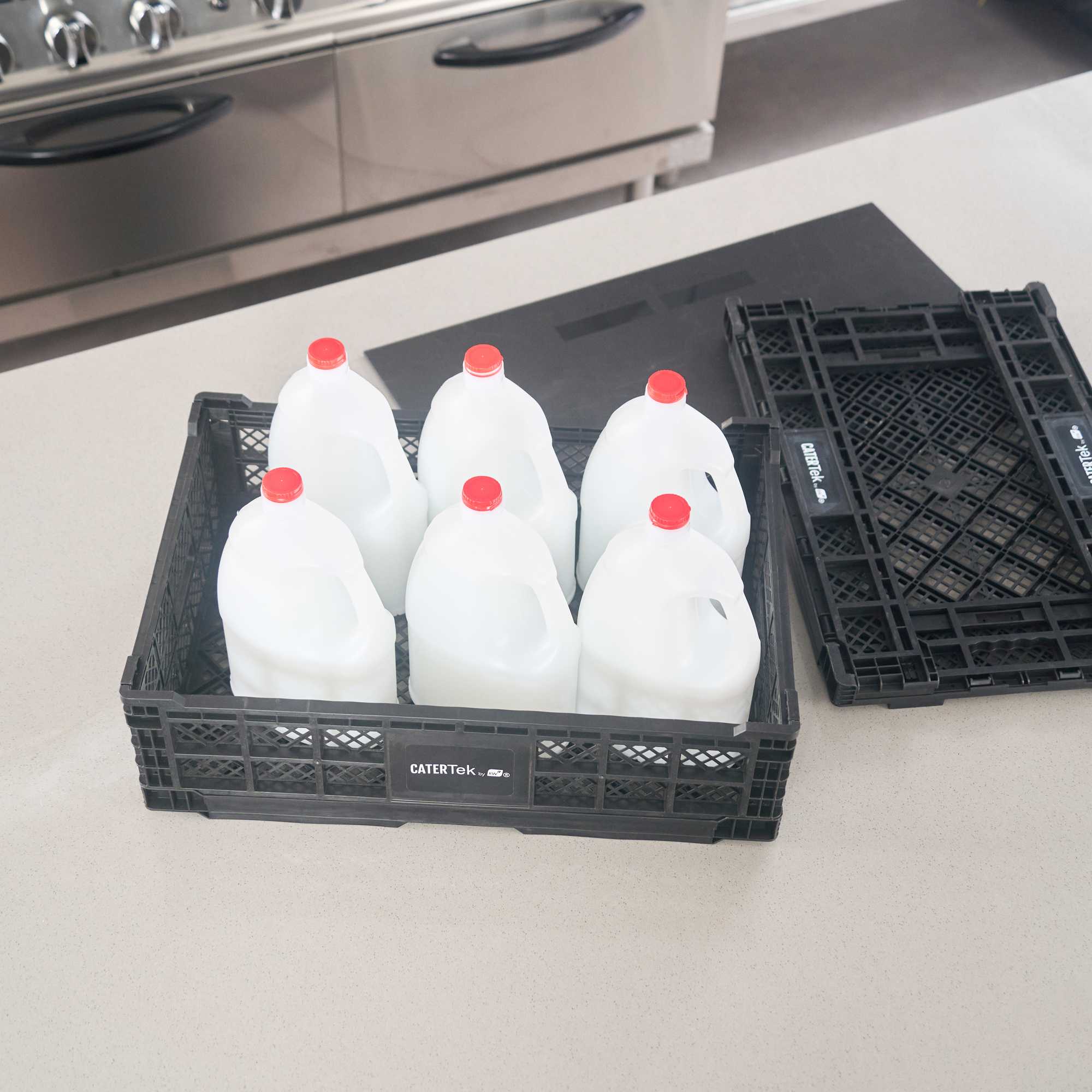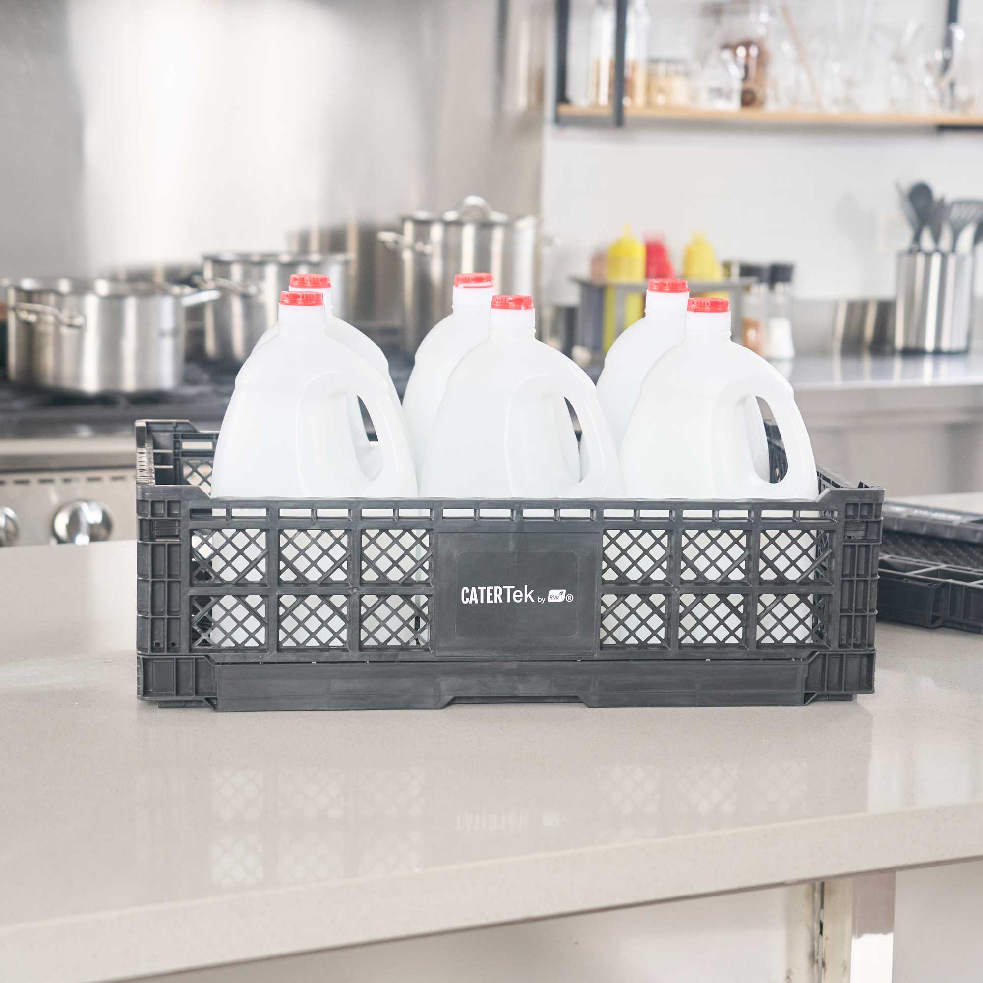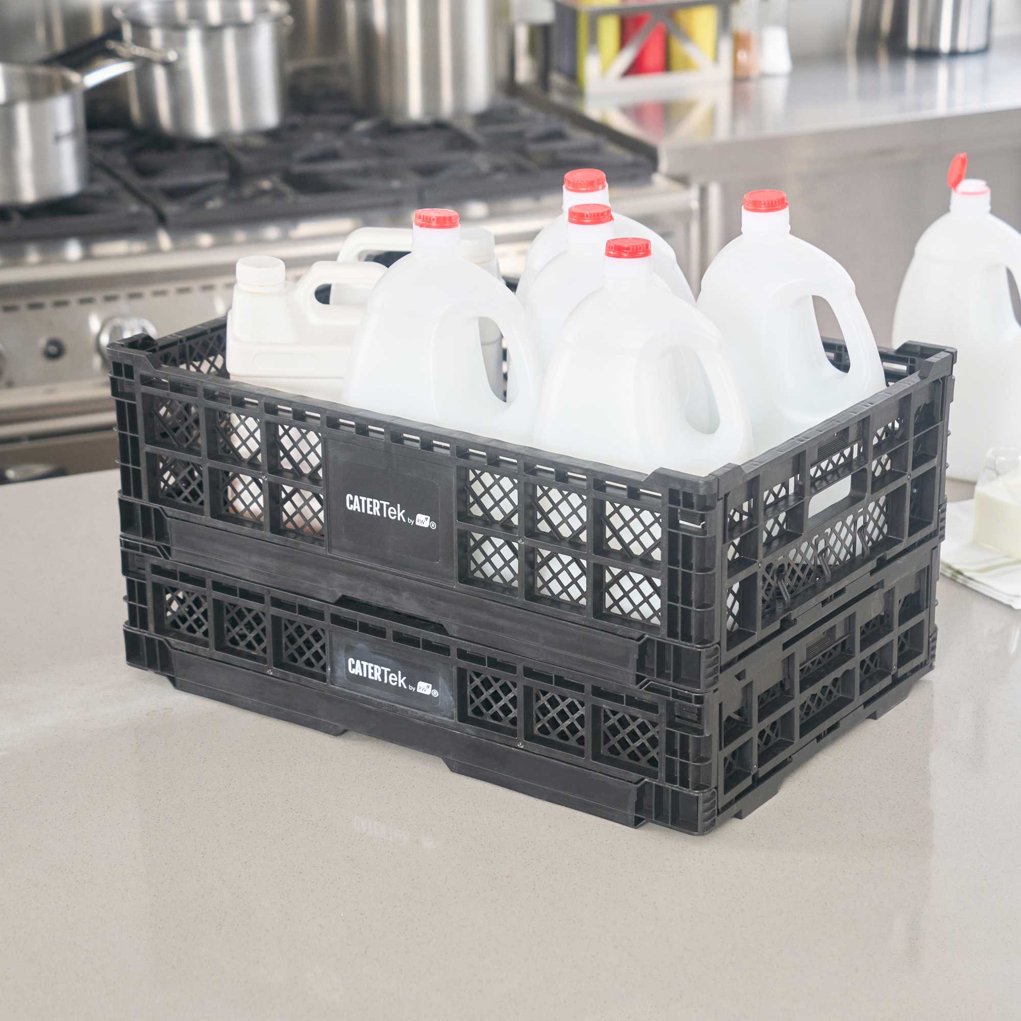 Optimize storage with versatile collapsible storage solutions. The Cater Tek Black Plastic Collapsible Storage Bin provides durable polypropylene construction, offering reliable support for heavy loads and ensuring long-lasting usability in foodservice environments. With a stackable storage crate design, these bins facilitate efficient kitchen organization, maximizing limited space. The vented plastic crate features vented sides, promoting airflow that keeps produce fresh for longer periods, a critical advantage for maintaining the quality of fresh ingredients. Its collapsible design saves space in storage and transport, making it an ideal choice for catering businesses looking to streamline operations. Measuring 23.6 inches in length by 15.7 inches in width by 6.6 inches in height, this bin is perfectly suited for grocery store produce racks to display bulk items effectively. Each order includes 10 Cater Tek Black Plastic Collapsible Storage Bins.