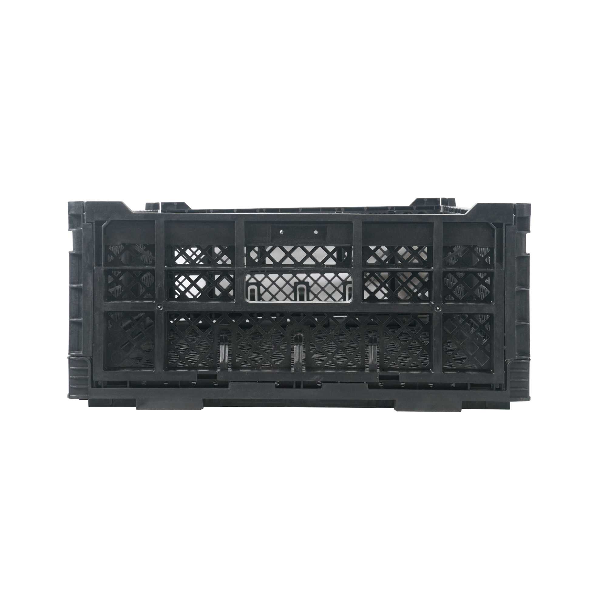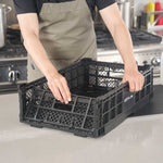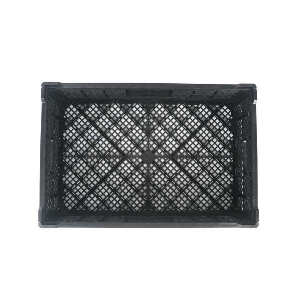 RECTANGLE BLACK PLASTIC COLLAPSIBLE CRATE - VENTED, STACKABLE
