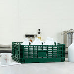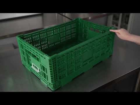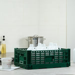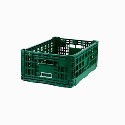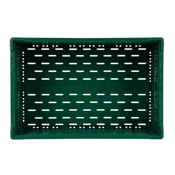 RECTANGLE GREEN PLASTIC 36L COLLAPSIBLE MILK CRATE - STACKABLE