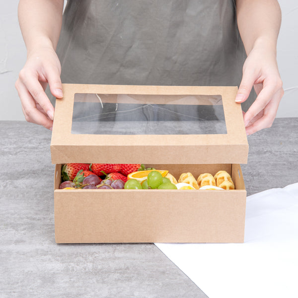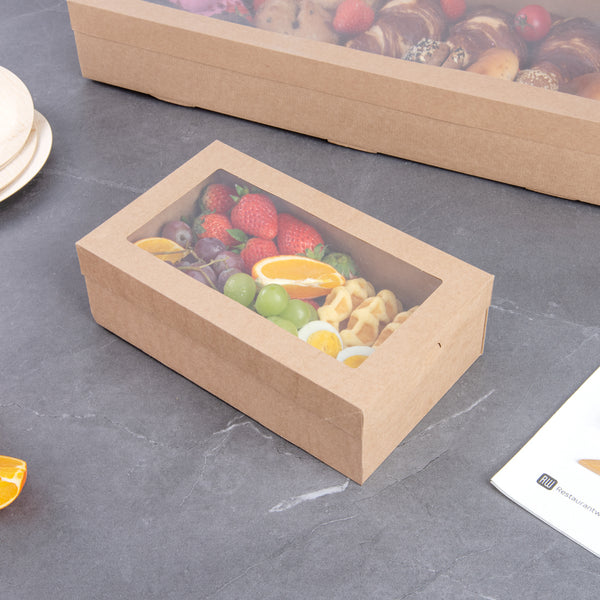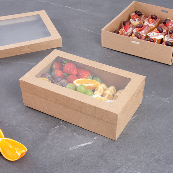 RECTANGLE KRAFT PAPER CATERING BOX - WITH WINDOW LID