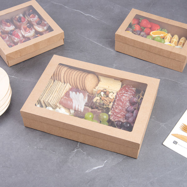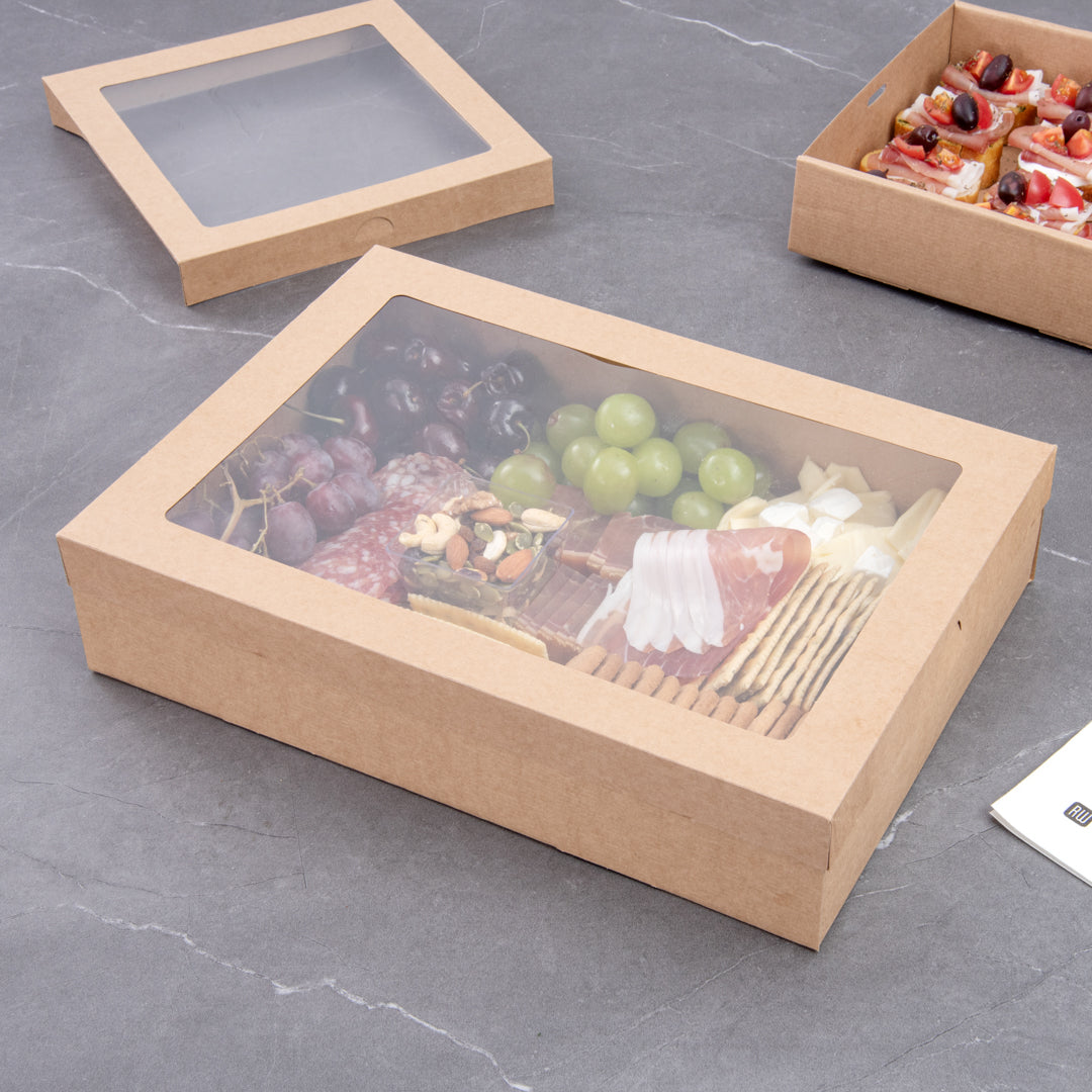 RECTANGLE KRAFT PAPER CATERING BOX - WITH WINDOW LID
