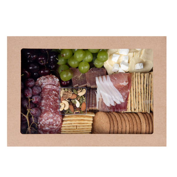 Easily package charcuterie, pastries, or sandwiches with our Cater Tek Rectangle Kraft Paper Catering Boxes. Featuring an insert tab lock, these catering boxes provide extra security while on the go. To keep orders clean and avoid messy leaks or stains, these catering food containers are grease-resistant. Equipped with included lids, these cardboard catering boxes have a clear window, so guests can preview your catering presentation. Crafted from brown kraft paper, these catering boxes with windowed lids are sturdy to withstand the weight of a variety of snacks. To save space in your storage area, these catering boxes with lids are shipped flat and are easy to assemble for speedy packaging. For a planet-friendly cleanup, these kraft paper catering boxes are recyclable. These catering boxes with lids measure 14.25 inches long by 10 inches wide by 3.25 inches tall. Sold in a 10 count box.