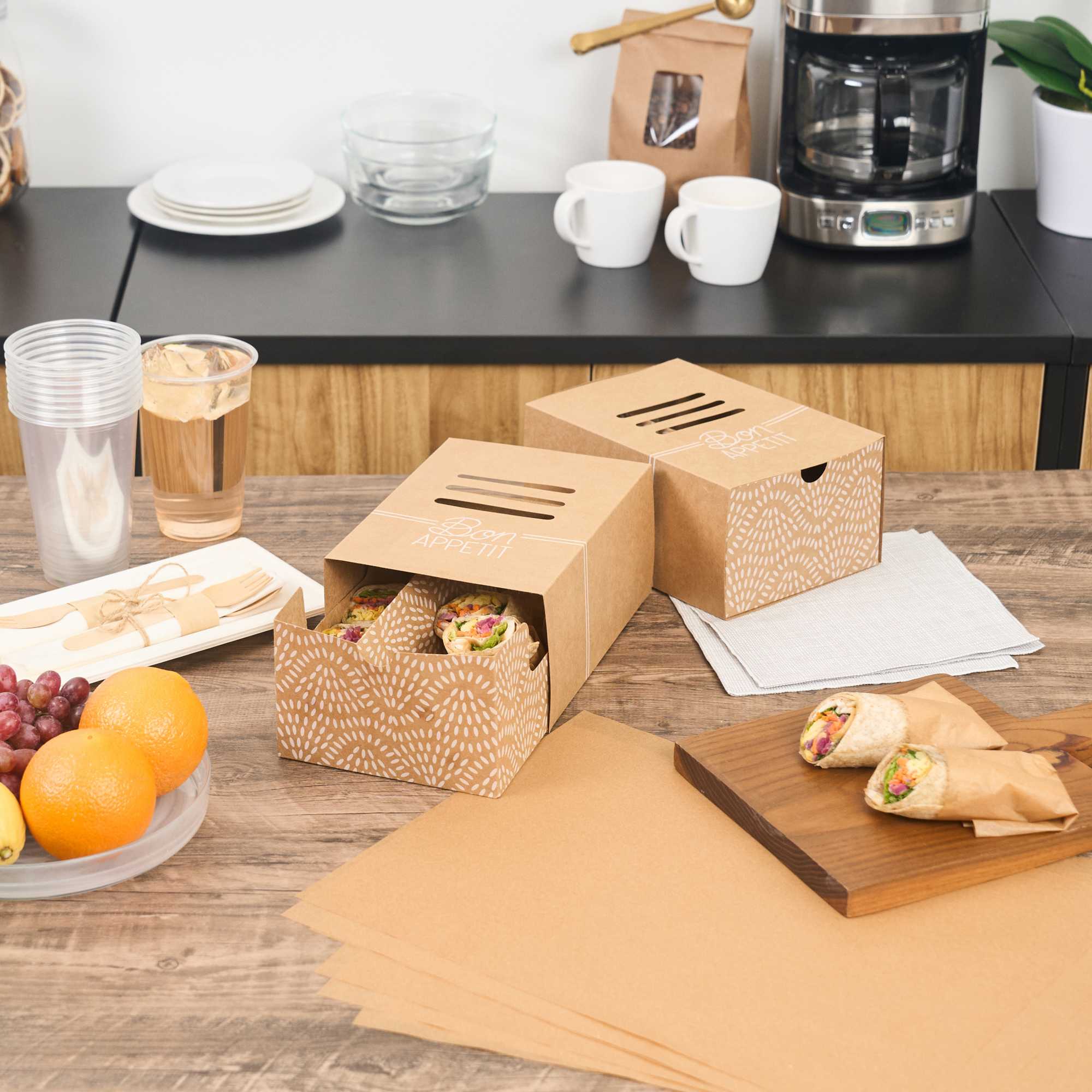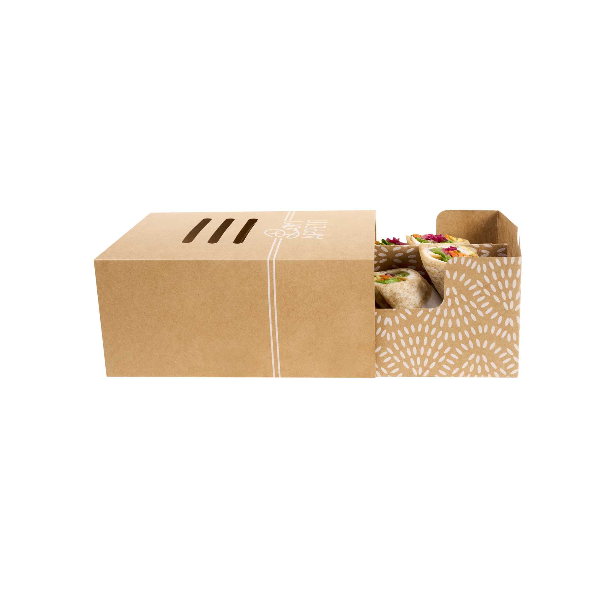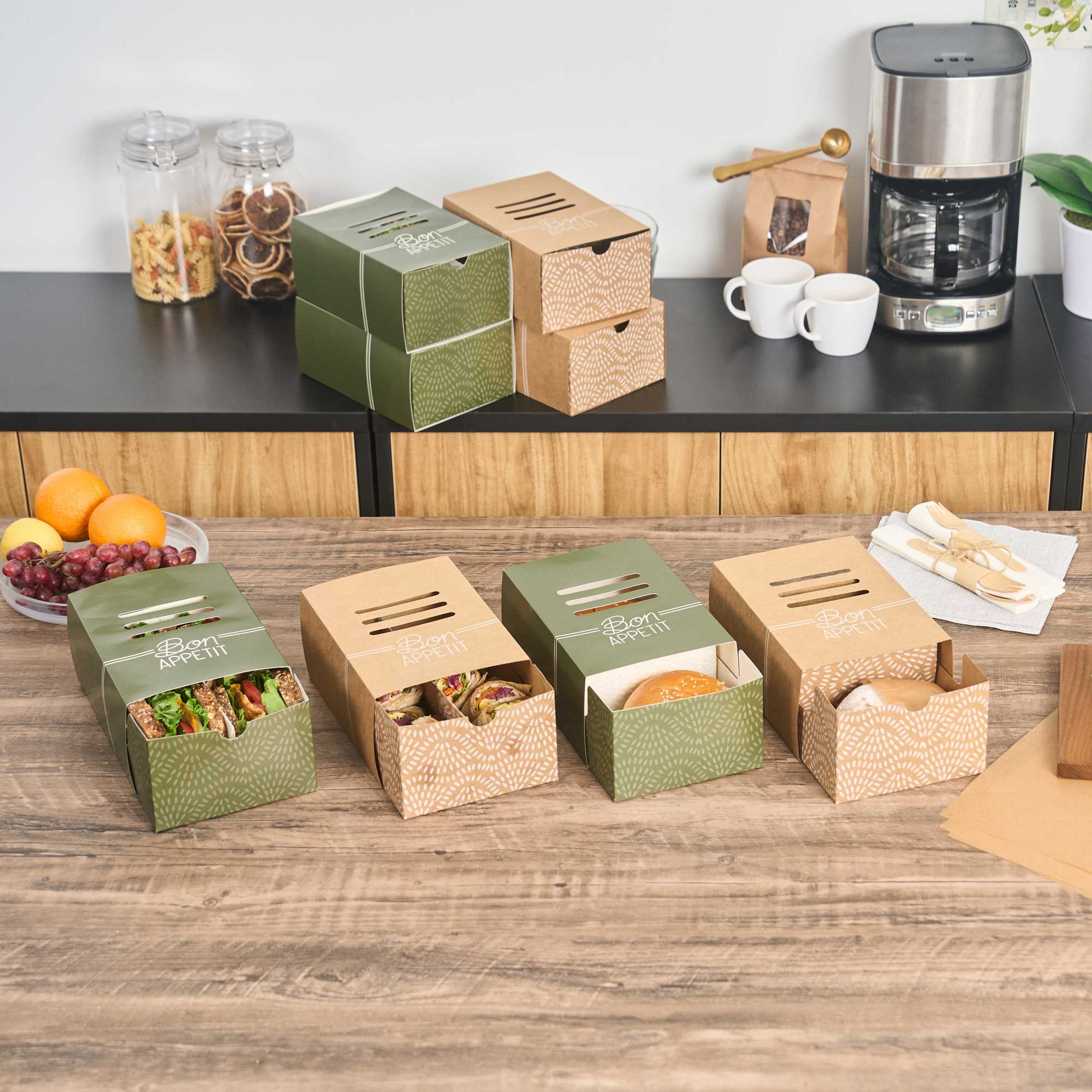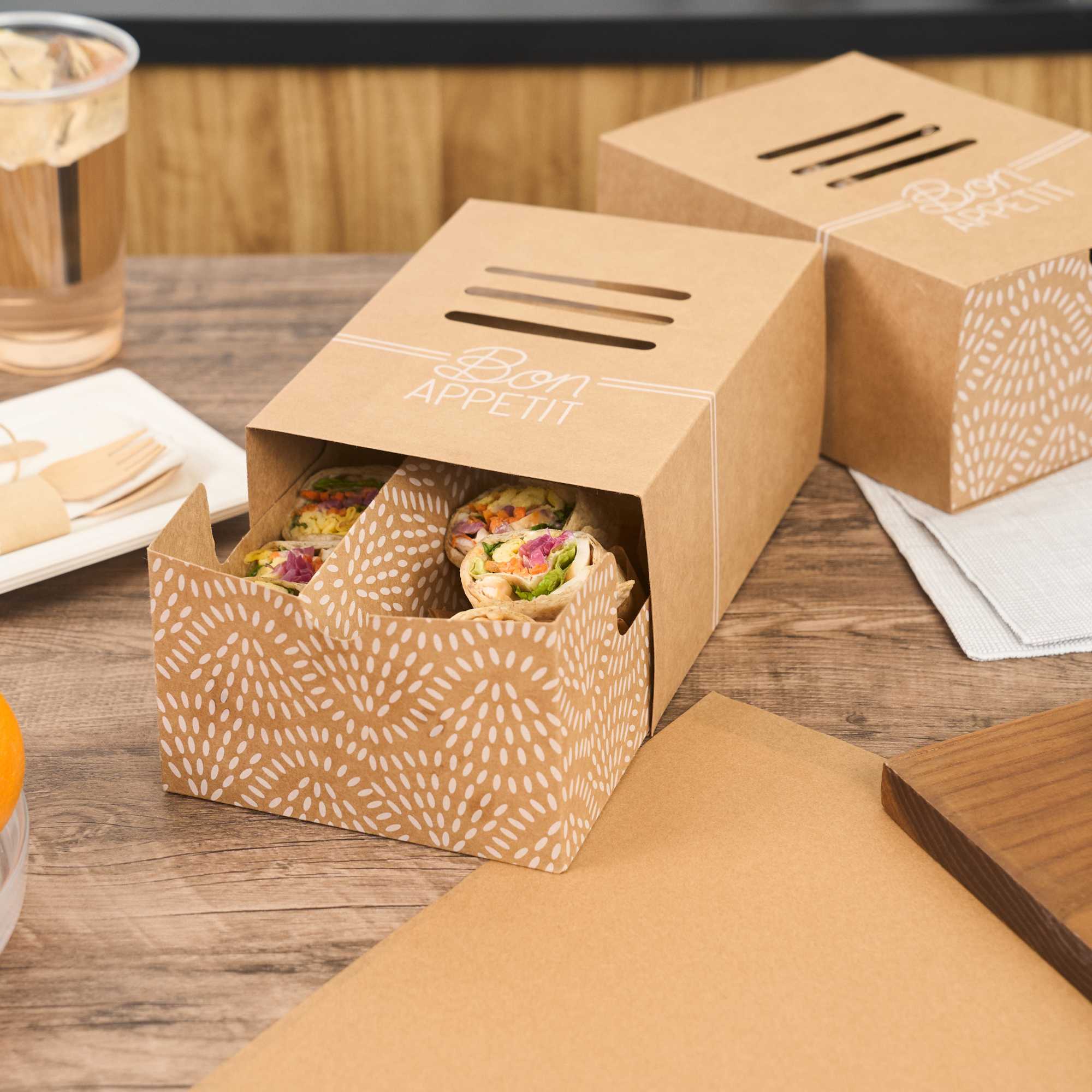 - Food-grade cardboard ensures safety and hygiene in service