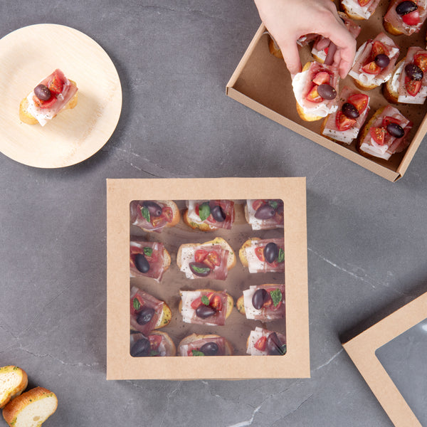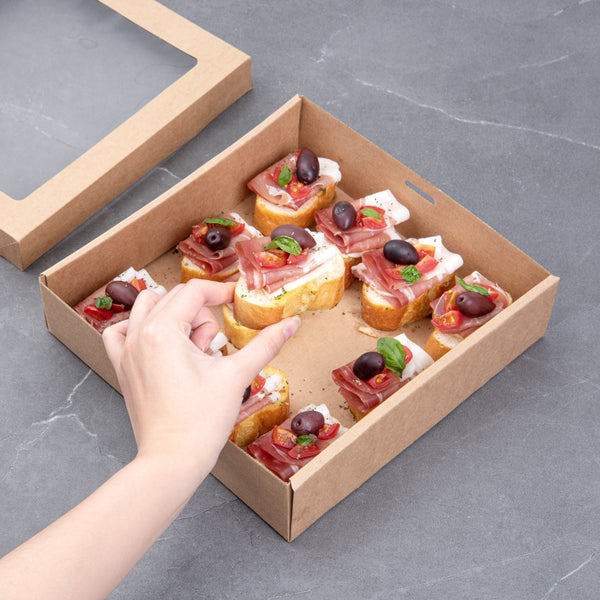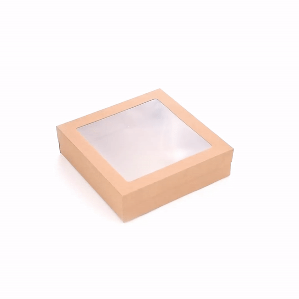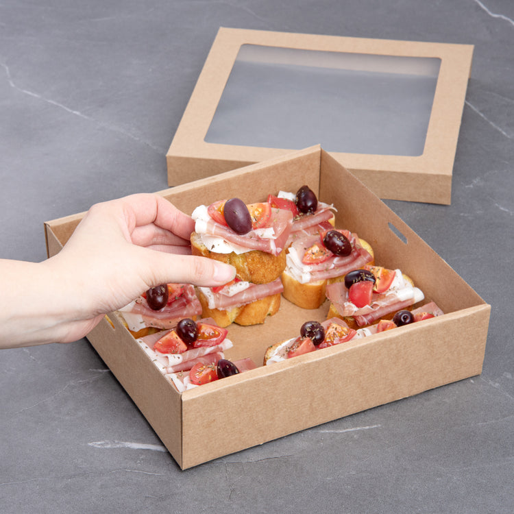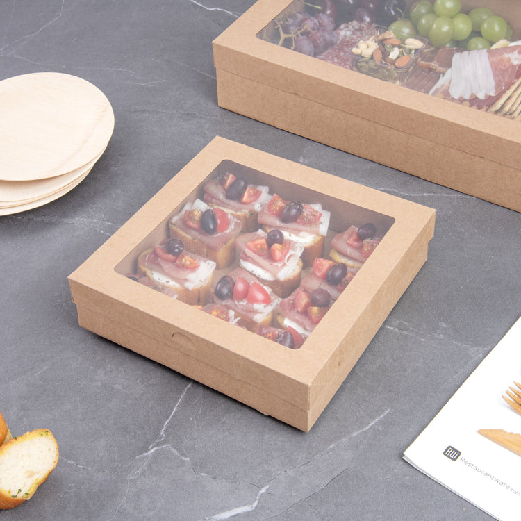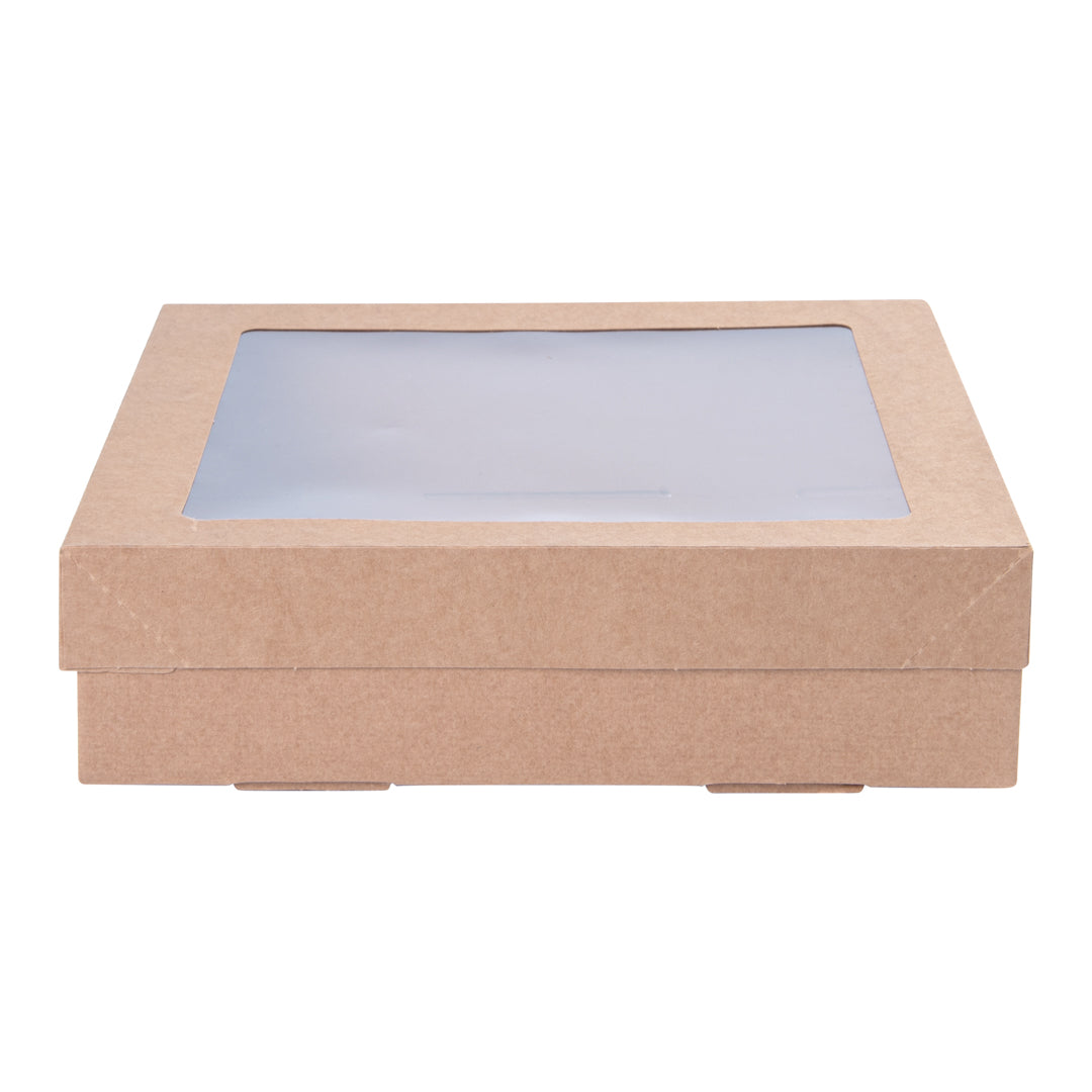 SQUARE KRAFT PAPER CATERING BOX - WITH WINDOW LID