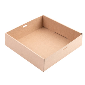 Use our Cater Tek Square Kraft Paper Catering Boxes to neatly pack and deliver catered treats. These catering boxes securely close with their insert lock tabs to make carry out or deliveries mess-free during transport. To avoid messy spills or leaks, these catering food containers are grease-resistant. With included lids, these cardboard catering boxes feature a transparent window to clearly identify orders and avoid mixups. These catering boxes with lids are constructed from brown kraft paper to provide a rustic aesthetic to your to go orders. To save storage space, these catering boxes with windowed lids are shipped flat and are easy to assemble for quick snack packaging. To promote a positive impact on the earth, these kraft paper catering boxes are recyclable. These cardboard catering boxes measure 9 inches in length by 9 inches in width by 2.25 inches in height. Sold in a 10 count box.