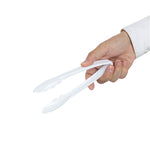 WHITE HEAVY-DUTY DISPOSABLE PLASTIC TONGS - SCALLOPED