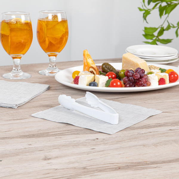 Make foodservice effortless with our Cater Tek White Heavy-Duty Disposable Plastic Tongs. Made of heavy-duty plastic, these serving tongs are crafted to be sturdy and dependable, reducing the risk of breakage. The scalloped edges of these salad tongs offer a secure grip, ensuring precise handling of various food items without slipping. These food tongs are food-grade, ensuring safety and reliability for all your foodservice needs. Designed to withstand temperatures from -40°F to 176°F, these disposable tongs are ideal for serving an assortment of foods, including salads, appetizers, and desserts. Featuring strong handles, these serving tongs provide a firm grip, making it easy to serve even larger portions. Designed for easy disposal, these food tongs are recyclable, simplifying cleanup at buffets, weddings, and catered events. Perfect for maintaining cleanliness at self-service stations, these plastic serving tongs offer both convenience and efficiency. Measuring 7 inches in length by 2 inches in width by 1.25 inches in height, these tongs are compact and practical. Sold in a 100 count box.